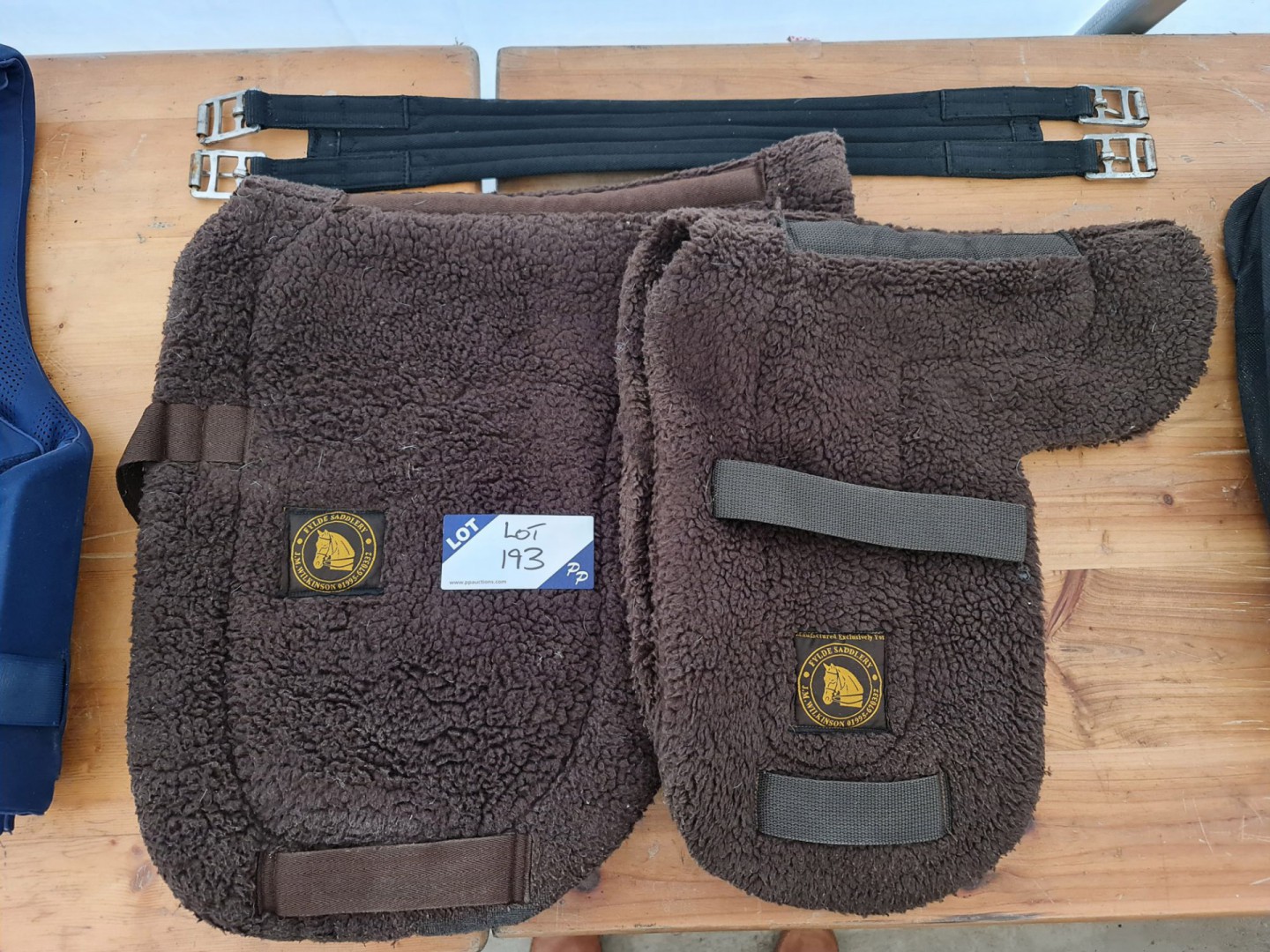 2x brown wool pony numnahs & Shire 26" girth strap - Lot located at: PP Saleroom, Aunby, Lincolnshire