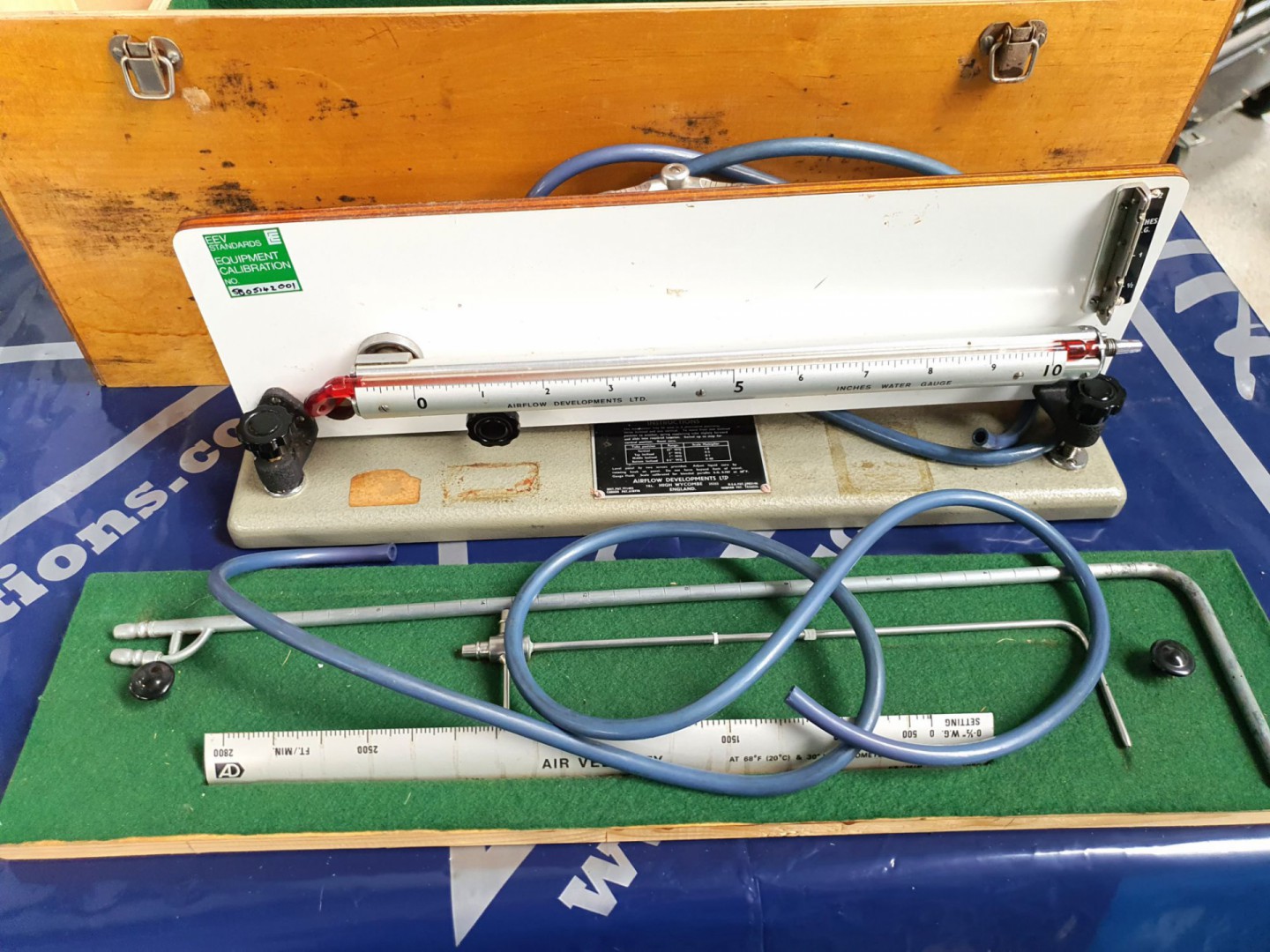 Airflow Developments precision manometers & pitot static tubes tester in wooden case with accessories (T346) - lot located at: PP Saleroom, Aunby, Lincolnshire