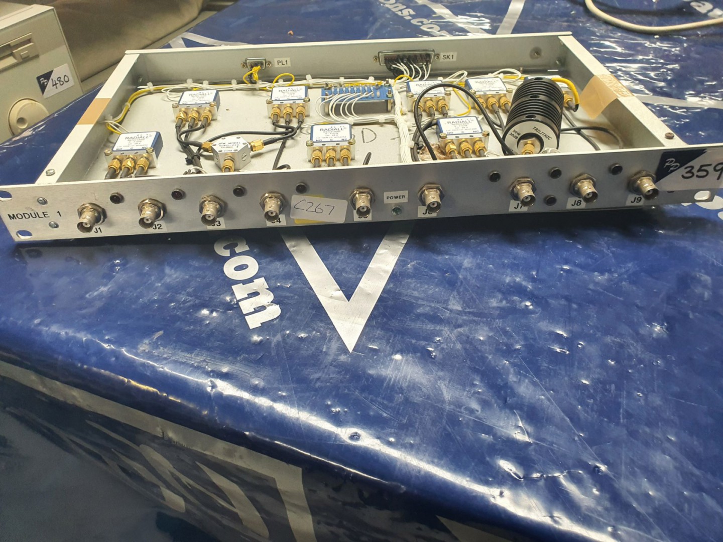 Module 1 distribution unit with 8x Radiall 0-3GHz switches, JFW power splitter & Trilithic DC-4CH 250W 30dB attenuator (C267) - lot located at: PP Saleroom, Aunby, Lincolnshire