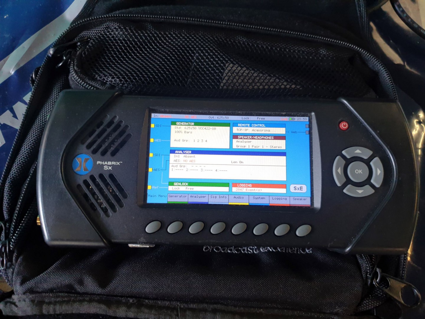 Phabrix SXE advanced physical layer toolset with equipment in case, options:- PHSXOVNC, PHSXOSD, PHSXOZ, PHSXOEA, PHSXOF - lot located at: Peppard Common, Oxfordshire