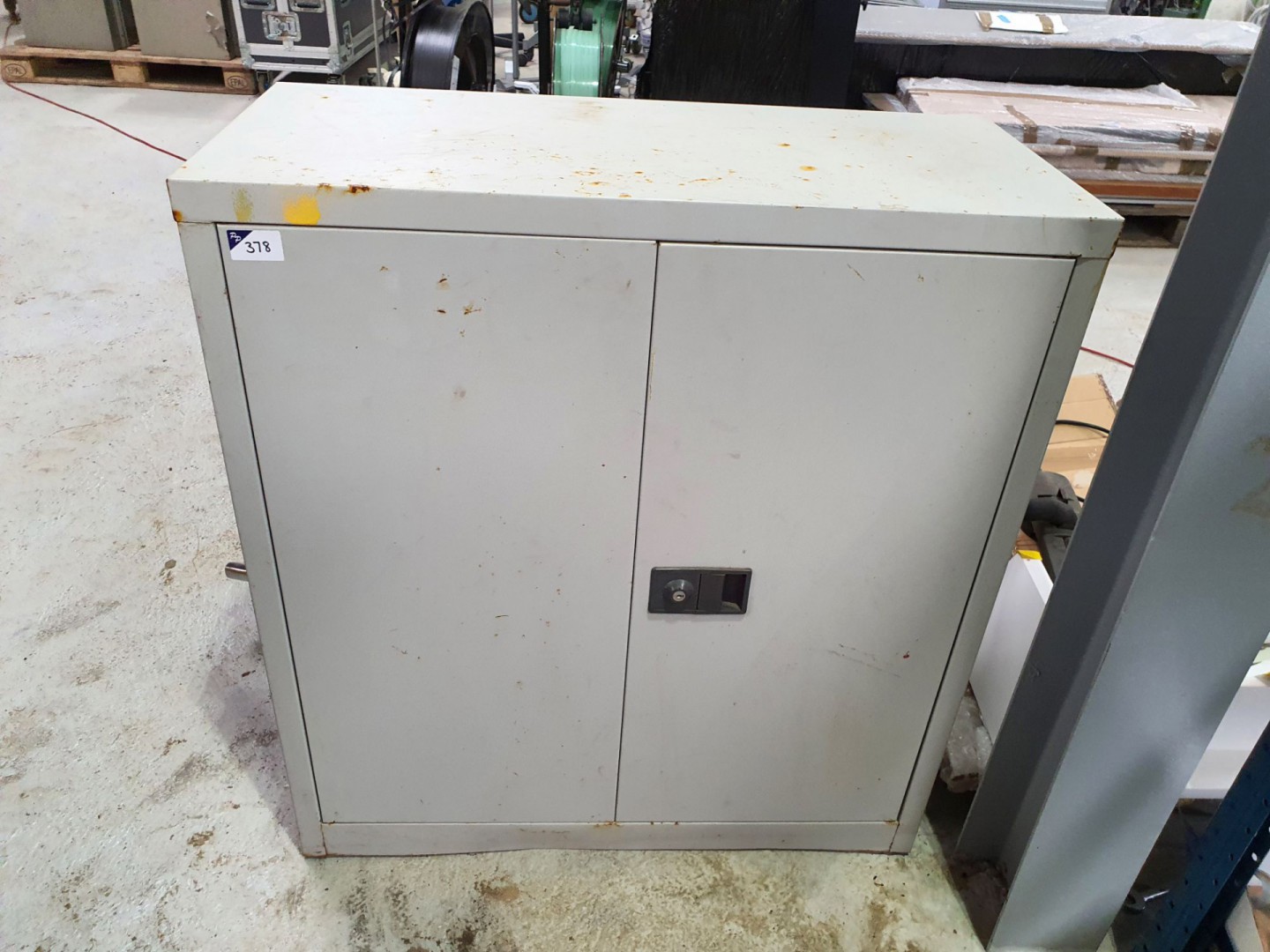 Grey metal 2 door storage cupboard - Lot Located at: PP Saleroom, Aunby, Lincolnshire
