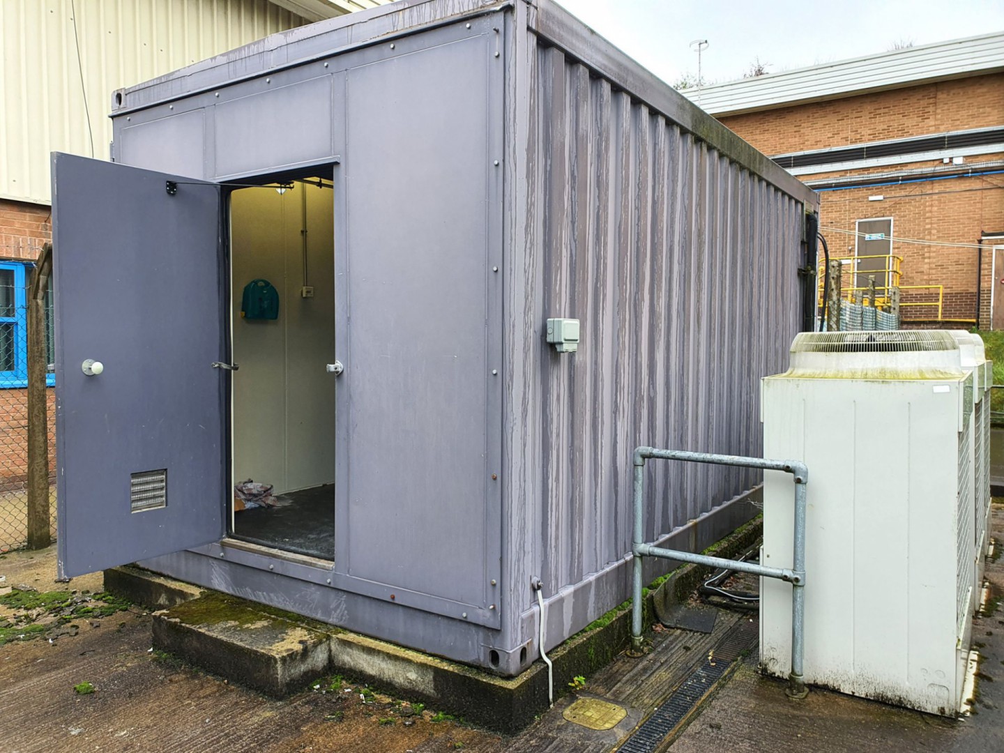 Piller Uniblock R625-5/5 battery back up system in 6x3m metal container, 625kva (2004) with 140x Datasafe 12HX560FR+ 12v batteries (2015) & 3x Mitsubishi air conditioning units (2003)