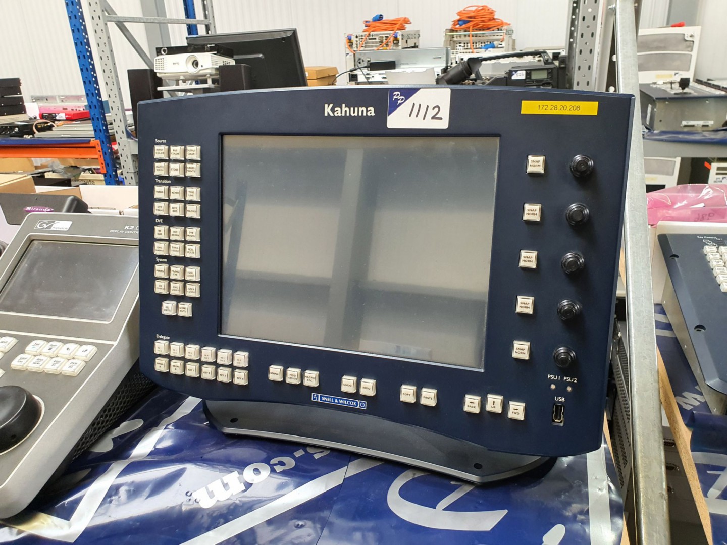 Miranda ImageStore. Snell & Wilcox Kahuna remote aux panel. Dolby CP750 digital cinema processor. Merging Dua II audio interface. Grass Valley, SAM etc control panels. TSL, BES MDU’s. SAM Kula key control. Grass Valley Kaleido RCP2 remotes. Zebra GX430T, ZP450 label printers. Miranda audio monitor control panel. Grass Valley K2 Dyno replay controller. Snell & Wilcox Kahuna fader panels. Grass Valley Infinity digital media camcorder. Tektronix 2247A oscilloscope. Solderstar Temperature Profiling systems. Miranda DEC-291p Picolink SDI Decoder. Miranda Kaleido Solo loudness monitor. Len cable clone. Grass Valley K2 Edge integrated playout server. Ensemble Designs Avenue signal integration systems. Qty various hand tools, heat guns, soldering irons, crimpers etc. Grass Valley Densite 2 chassis. Kontron Nano ETXExpress starter kit. Sony BVE-910 & BE-2000 editing control units. Miranda NV920 routing systems controller. Snell & Wilcox VDA12 video distribution amplifier.