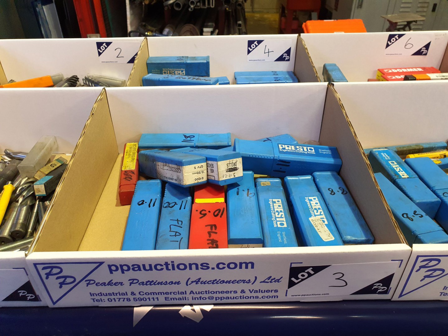 Qty small tooling / inspection equipment inc: drills, collets, tool holders, parallels, clamps, vices, taps, end mills, bore gauges, dial gauges, tips, turning tools, slot drills, Vee blocks, machine clamps etc etc