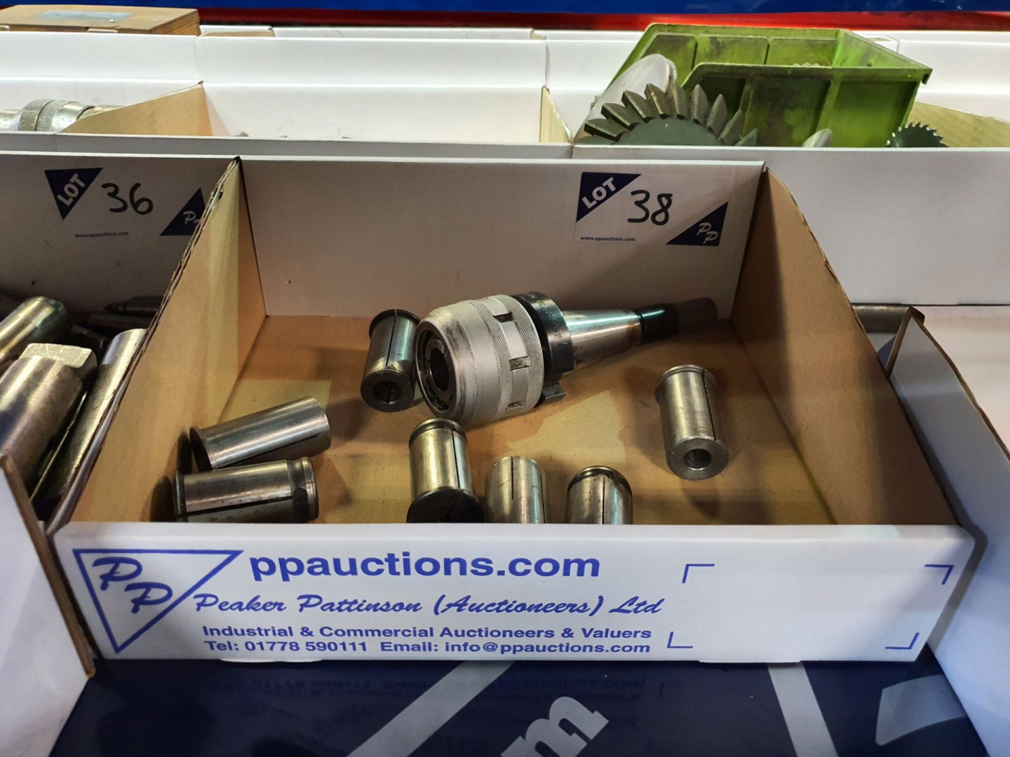 Qty small tooling / inspection equipment inc: drills, collets, tool holders, parallels, clamps, vices, taps, end mills, bore gauges, dial gauges, tips, turning tools, slot drills, Vee blocks, machine clamps etc etc
