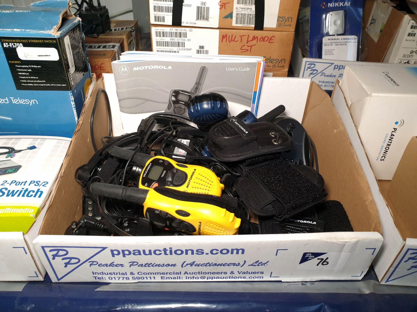 4x Motorola T6222 talk about walkie-talkies. 3x ATI MC101XL fast ethernet media converters (boxed)