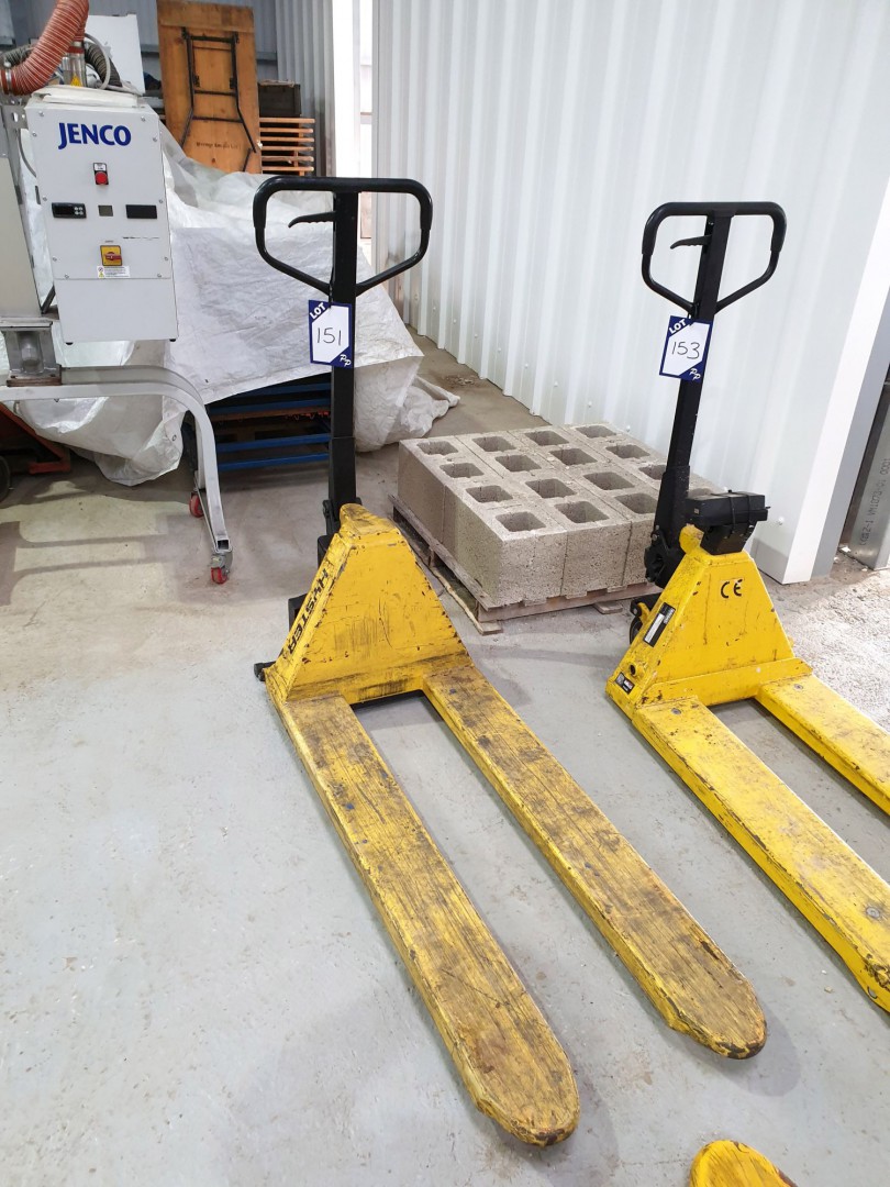 Qty various, Hyster, Nesco etc pallet trucks, digital scales (to 2018)