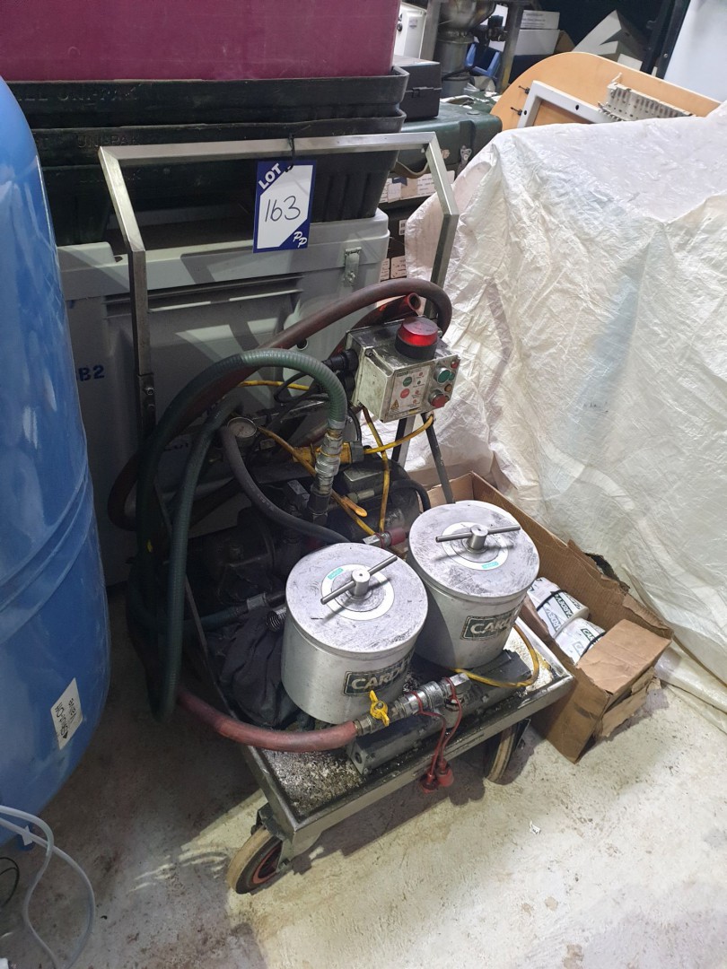 Cardev electric hydraulic filtered oil pump on mobile trolley, 110v inc: filters - Lot Located at: PP Saleroom, Aunby, Lincolnshire