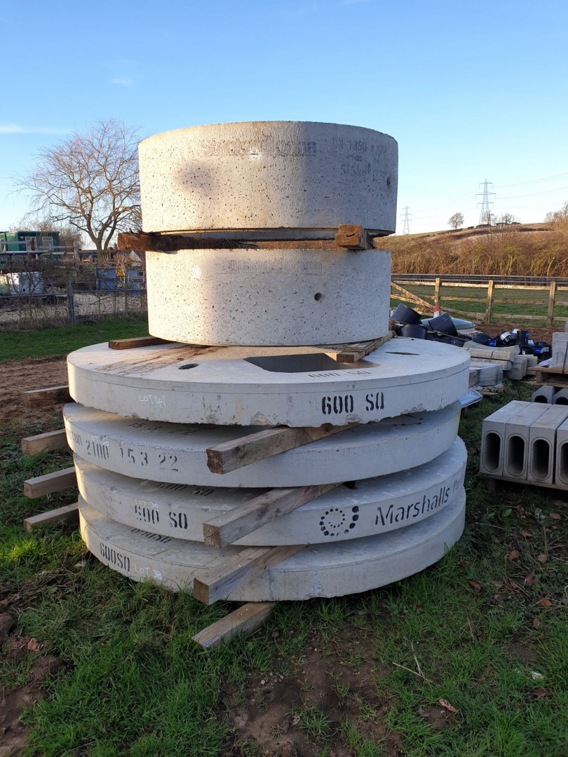 4x Marshalls 2100 concrete channels tops / lids, 2x 1200x500mm concrete drainage rings - Lot Located at: PP Saleroom, Aunby, Lincolnshire