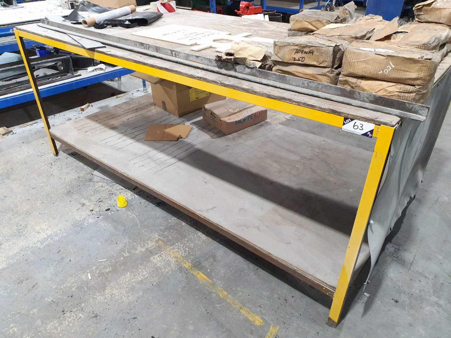 Metal frame wooden top workbench, 2450x1250mm