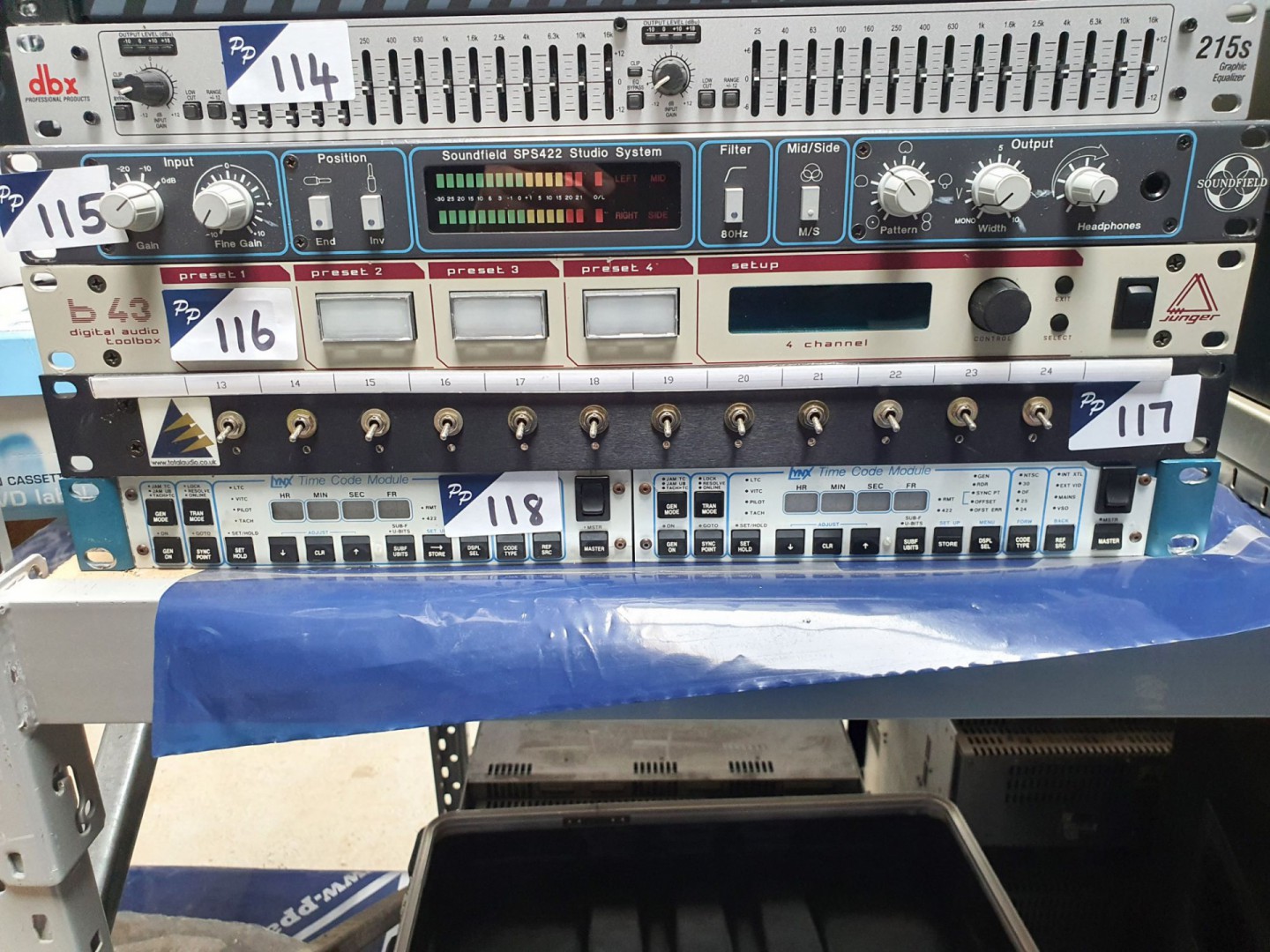 Rack type PPM. Otari UFC-24 universal format converter. Soundcraftsman TG2245 twin graphic balance in / out. Audio Design DBL-9 digital broadcast limiter. Black Magic Design smart view duo. Kramer VS-611 6x1 vertical interval switcher. SM Pro Audio D18 line mixer. Yamaha Q2031 graphic equaliser. Peavey Deca / 1200 digital energy conversion amp. Marantz RC640CDR remote control. Elite Camix 401 loudspeakers. Sony SL-C6UB Betamax video cassette recorder. Marantz DD-82 cassette deck. Sony PCM-701ES digital audio processor. 2x Marantz PMD321 CD player. Marantz CDR640 CD recorder. CD Associates SL25 CD-R analyser. Microphone sound deflector. Thump 12A powered loudspeakers. Mackie Active SWA1501 subwoofers. Ferrograph 4A, Teac A-3440 & Otari MX-5050, Otari MX7800, Otari MTR-10 reel to reel recorder. Sony LVA-8000P laser video disc player. 3x Sony Editing system. Chase etc microphone stands. Orla Shure Prestige electric organ on stand. Sony PCM-3324A digital audio recorder. Sony RM-3348 digital audio recorder remote. 2x DTS-6D playback system 12x Doremi Cinema AUD-D2A D/A audio converter. 9x Dolby CP500 digital cinema processor, Dolby DA20 digital film sound processor. Dolby SA10 surround adapter. 2x Master Image stereoscopic 3D theatre system. 2x loudspeaker subwoofers. Qty US, HP, Dell etc LCD monitors.