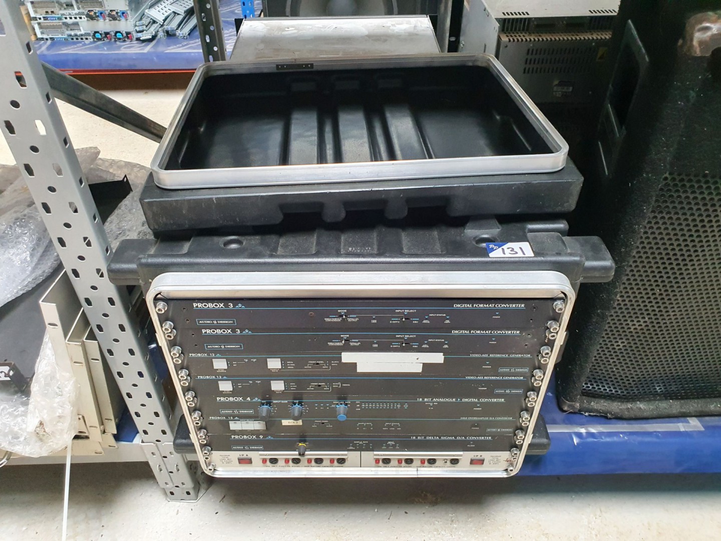 Rack type PPM. Otari UFC-24 universal format converter. Soundcraftsman TG2245 twin graphic balance in / out. Audio Design DBL-9 digital broadcast limiter. Black Magic Design smart view duo. Kramer VS-611 6x1 vertical interval switcher. SM Pro Audio D18 line mixer. Yamaha Q2031 graphic equaliser. Peavey Deca / 1200 digital energy conversion amp. Marantz RC640CDR remote control. Elite Camix 401 loudspeakers. Sony SL-C6UB Betamax video cassette recorder. Marantz DD-82 cassette deck. Sony PCM-701ES digital audio processor. 2x Marantz PMD321 CD player. Marantz CDR640 CD recorder. CD Associates SL25 CD-R analyser. Microphone sound deflector. Thump 12A powered loudspeakers. Mackie Active SWA1501 subwoofers. Ferrograph 4A, Teac A-3440 & Otari MX-5050, Otari MX7800, Otari MTR-10 reel to reel recorder. Sony LVA-8000P laser video disc player. 3x Sony Editing system. Chase etc microphone stands. Orla Shure Prestige electric organ on stand. Sony PCM-3324A digital audio recorder. Sony RM-3348 digital audio recorder remote. 2x DTS-6D playback system 12x Doremi Cinema AUD-D2A D/A audio converter. 9x Dolby CP500 digital cinema processor, Dolby DA20 digital film sound processor. Dolby SA10 surround adapter. 2x Master Image stereoscopic 3D theatre system. 2x loudspeaker subwoofers. Qty US, HP, Dell etc LCD monitors.
