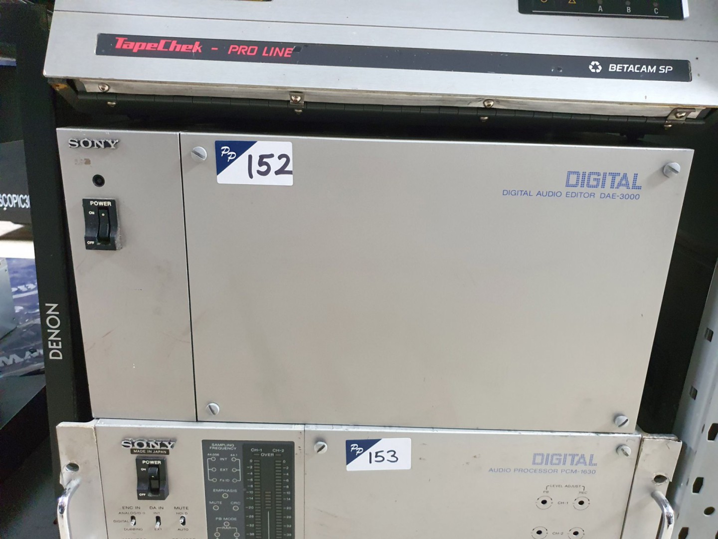 Fostex 80 reel to reel recorder – reproducer. Infortrend hard drive storage unit. Sony DMU-3024 digital meter unit. BTS BCB75, Sony DVR-28P, VO-5800PS, DVW-A500P, DVW-A510, DSR-1500, BVU-870P video cassette recorders / players. Sony DMR-2000 & Sony DMR-4000 digital master recorder. Marantz RC640CDR compact disc remote. 2x Audio Design DMM digital mini mixing consoles. Klark Teknik 3rd dimension BBD-320 analog multi-dimensional signal processor. Tektronix 118-AS audio synchroniser. Tektronix VS211A PAL video synchroniser. Tektronix 1741A waveform / vector monitor, TSL monitoring unit. Adams Smith Hudson 2600 System. 2x Tektronix 1721 vector scopes. Tektronix 143 Secam test signal generator. Qty Sony, Panasonic CRT monitors. 2x Sony PCM-1600 PCM audio unit. CPE Medisafe sonic irrigator. Sony BVR-20 remote control box. Korg Triton-Rack expandable HI module sampler. Blip MA2 control with remote. Sony PCM-7040, PCM-2500A, PCM 2500B, PCM-R500 digital audio recorder. Kramer VM-5AR11 video audio distribution amp. Tascam DX-4D professional noise reduction unit. 3x Sony MDS-B5 MD recorder. Electronic projector screen. Amonstar YJ-1500QZ stage fog machine. Sony SDP-1000 digital audio effector. JVC SA-T41E time base corrector. Sony DFX-2400 sampling rate converter. Nakamichi NR-200 noise reduction system. Sony DMR-2000 digital master recorder. 3x Sony PCM-9000 master disc recorder. 2x Revox G36 stereo reel to reel tape machine. Sanyo G-2615H-2 solid state stereo music centre. 2x Auso ELA75-77 PPM. Sony PS-T1 direct drive stereo turntable. Sanyo VTC-9300PN Betacord video cassette recorder. Qty transit cases. Nakamichi 1000 tri-tracer 3 head cassette system. Manitron monitor. 2x Sony DMX-R100 digital audio mixing console. Revox A700 reel to reel tape recorder. Qty various rack type shelves etc. AMX NI-3000 Netlink integrated controller. DBX 215S graphic equaliser. Soundfield SPS422 studio meter system. Junger B43 digital audio toolbox