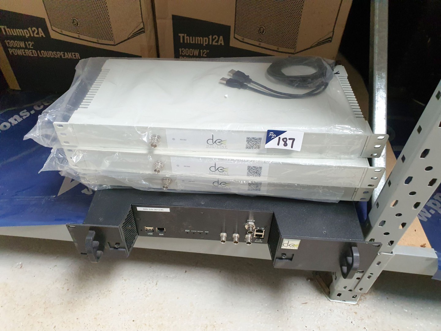 Rack type PPM. Otari UFC-24 universal format converter. Soundcraftsman TG2245 twin graphic balance in / out. Audio Design DBL-9 digital broadcast limiter. Black Magic Design smart view duo. Kramer VS-611 6x1 vertical interval switcher. SM Pro Audio D18 line mixer. Yamaha Q2031 graphic equaliser. Peavey Deca / 1200 digital energy conversion amp. Marantz RC640CDR remote control. Elite Camix 401 loudspeakers. Sony SL-C6UB Betamax video cassette recorder. Marantz DD-82 cassette deck. Sony PCM-701ES digital audio processor. 2x Marantz PMD321 CD player. Marantz CDR640 CD recorder. CD Associates SL25 CD-R analyser. Microphone sound deflector. Thump 12A powered loudspeakers. Mackie Active SWA1501 subwoofers. Ferrograph 4A, Teac A-3440 & Otari MX-5050, Otari MX7800, Otari MTR-10 reel to reel recorder. Sony LVA-8000P laser video disc player. 3x Sony Editing system. Chase etc microphone stands. Orla Shure Prestige electric organ on stand. Sony PCM-3324A digital audio recorder. Sony RM-3348 digital audio recorder remote. 2x DTS-6D playback system 12x Doremi Cinema AUD-D2A D/A audio converter. 9x Dolby CP500 digital cinema processor, Dolby DA20 digital film sound processor. Dolby SA10 surround adapter. 2x Master Image stereoscopic 3D theatre system. 2x loudspeaker subwoofers. Qty US, HP, Dell etc LCD monitors.