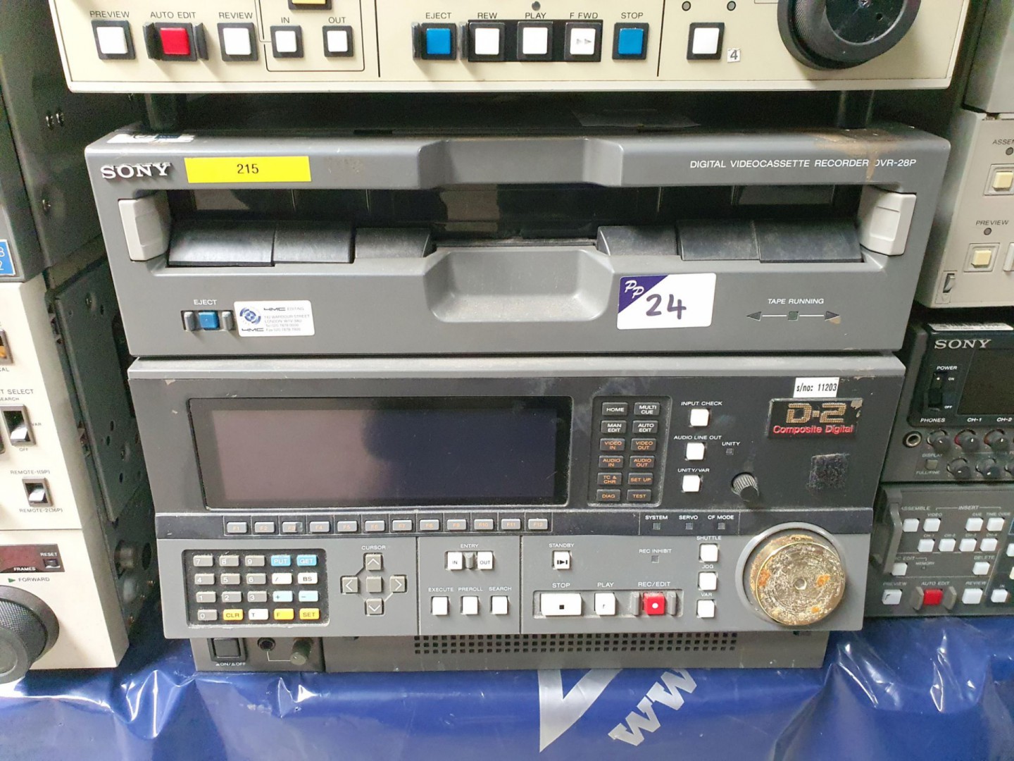 Rack type PPM. Otari UFC-24 universal format converter. Soundcraftsman TG2245 twin graphic balance in / out. Audio Design DBL-9 digital broadcast limiter. Black Magic Design smart view duo. Kramer VS-611 6x1 vertical interval switcher. SM Pro Audio D18 line mixer. Yamaha Q2031 graphic equaliser. Peavey Deca / 1200 digital energy conversion amp. Marantz RC640CDR remote control. Elite Camix 401 loudspeakers. Sony SL-C6UB Betamax video cassette recorder. Marantz DD-82 cassette deck. Sony PCM-701ES digital audio processor. 2x Marantz PMD321 CD player. Marantz CDR640 CD recorder. CD Associates SL25 CD-R analyser. Microphone sound deflector. Thump 12A powered loudspeakers. Mackie Active SWA1501 subwoofers. Ferrograph 4A, Teac A-3440 & Otari MX-5050, Otari MX7800, Otari MTR-10 reel to reel recorder. Sony LVA-8000P laser video disc player. 3x Sony Editing system. Chase etc microphone stands. Orla Shure Prestige electric organ on stand. Sony PCM-3324A digital audio recorder. Sony RM-3348 digital audio recorder remote. 2x DTS-6D playback system 12x Doremi Cinema AUD-D2A D/A audio converter. 9x Dolby CP500 digital cinema processor, Dolby DA20 digital film sound processor. Dolby SA10 surround adapter. 2x Master Image stereoscopic 3D theatre system. 2x loudspeaker subwoofers. Qty US, HP, Dell etc LCD monitors.