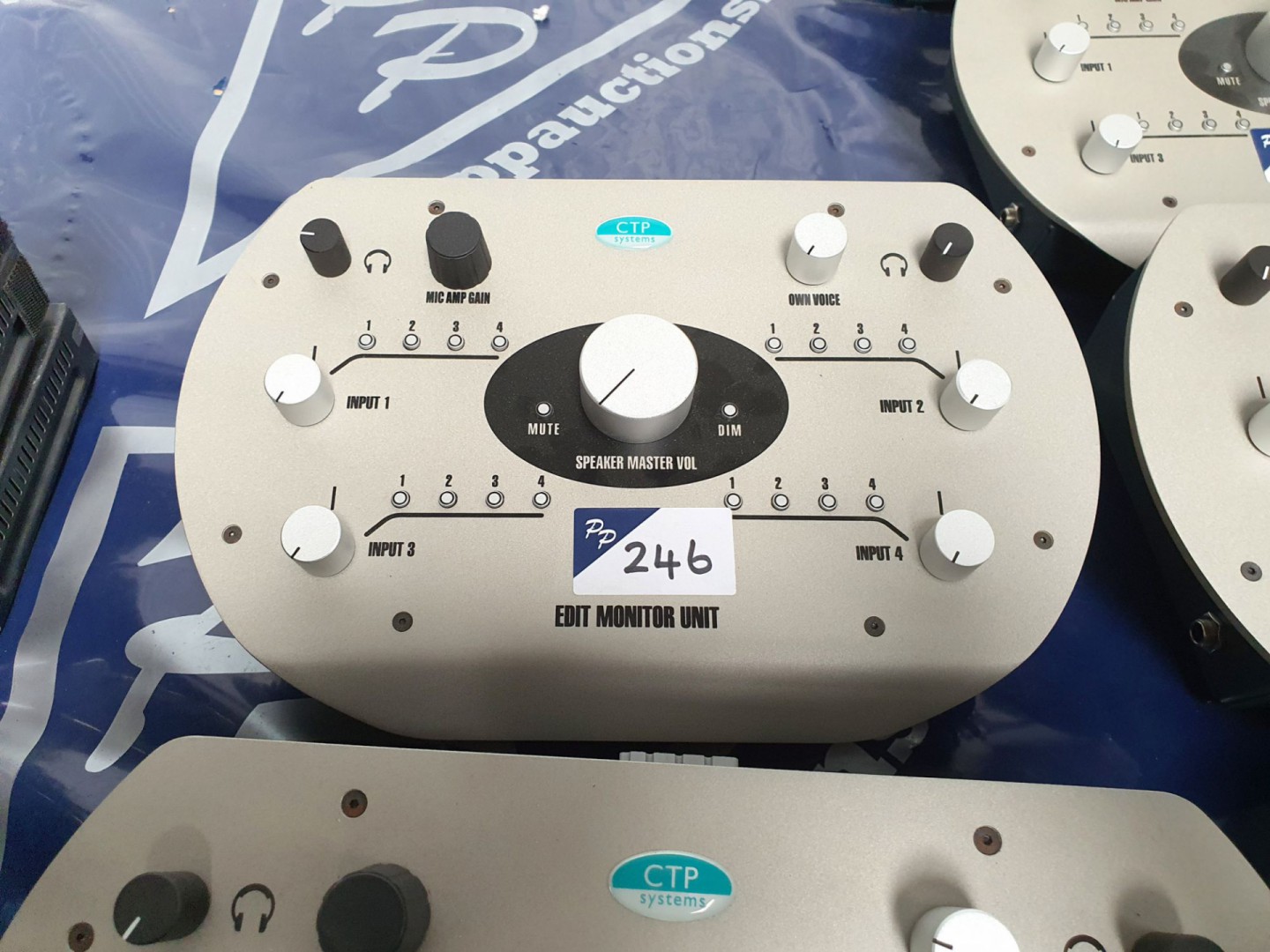 Rack type PPM. Otari UFC-24 universal format converter. Soundcraftsman TG2245 twin graphic balance in / out. Audio Design DBL-9 digital broadcast limiter. Black Magic Design smart view duo. Kramer VS-611 6x1 vertical interval switcher. SM Pro Audio D18 line mixer. Yamaha Q2031 graphic equaliser. Peavey Deca / 1200 digital energy conversion amp. Marantz RC640CDR remote control. Elite Camix 401 loudspeakers. Sony SL-C6UB Betamax video cassette recorder. Marantz DD-82 cassette deck. Sony PCM-701ES digital audio processor. 2x Marantz PMD321 CD player. Marantz CDR640 CD recorder. CD Associates SL25 CD-R analyser. Microphone sound deflector. Thump 12A powered loudspeakers. Mackie Active SWA1501 subwoofers. Ferrograph 4A, Teac A-3440 & Otari MX-5050, Otari MX7800, Otari MTR-10 reel to reel recorder. Sony LVA-8000P laser video disc player. 3x Sony Editing system. Chase etc microphone stands. Orla Shure Prestige electric organ on stand. Sony PCM-3324A digital audio recorder. Sony RM-3348 digital audio recorder remote. 2x DTS-6D playback system 12x Doremi Cinema AUD-D2A D/A audio converter. 9x Dolby CP500 digital cinema processor, Dolby DA20 digital film sound processor. Dolby SA10 surround adapter. 2x Master Image stereoscopic 3D theatre system. 2x loudspeaker subwoofers. Qty US, HP, Dell etc LCD monitors.