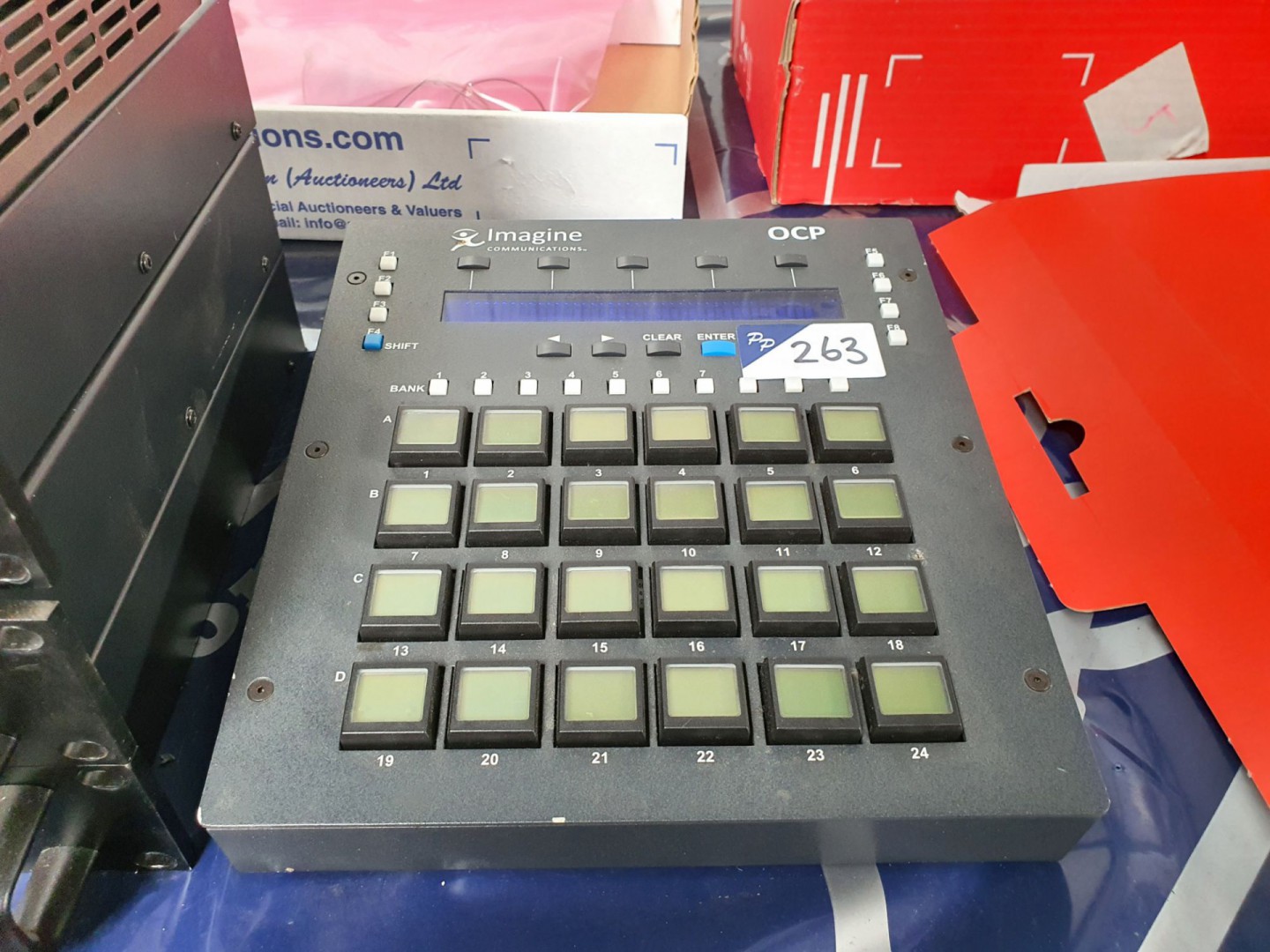 2x Snell Roll Call matrix panels. Qty various Farnell 463-048 connectors / sockets. Qlogic Sanbox 5800 fibre switch. Sam Kula 1ME control panel. 3x Miranda CR3232-AV analog video router. Qty various Snell IQ modular frame. Finisar XGIG fibre channel analyser. Grass Valley XY encore / prelude universal control panel. Grass Valley BPS Encore button-per-source control panel. DVS Atomix Bob 4x SDi panels. Snell Kahuna remote aux panel. 3x Kramer 621T DVI optical transmitters. Grass Valley Kahuna LCD panel console. 4x Stonesoft APP-FW-105-C1 stonegate modular firewall appliance. 3x Stereo Brain SB1+ 3D processor. 3x Cisco Aironet 802 dual band access point. Snell Roll Pod 3U-12 control panel & PSU. 2x Grass Valley Kaleido-RCP2 multiviewer remote control panel. Snell Kahuna 360 Compact console. Miranda RCP-BR touchscreen branding control.