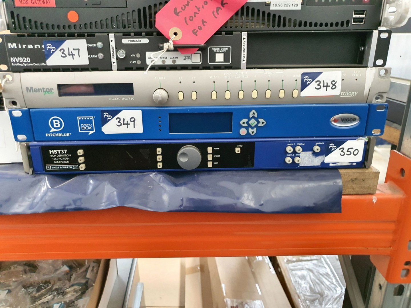 Quantel SQ server frame. Quantum Scalar i80 tape library. Peplink BPL-2500 & Peplink 210 & 310 router balance.4x Tektronix WFM601i serial component monitor. H.E.M.E International 100 AC/DC clip on ammeter.