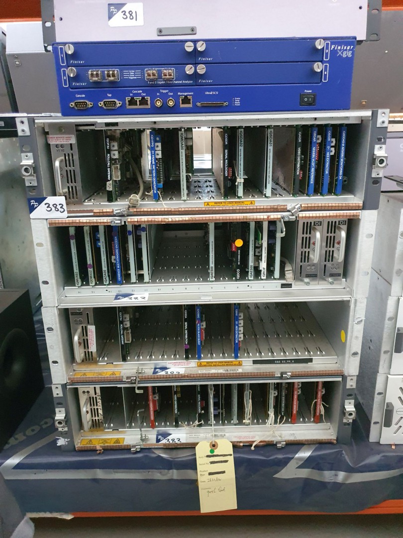 Grass Valley IQ modular frame. 4x Exinda 4010 network switch. Fibre Data fibre optic & optoelectronic kit. Snell & Wilcox IQ Modular Roll Call frame. Ensemble Avenue signal integration system frame. Grass Valley DMC 1000/10 infinity digital media camcorder. 7x Quantel HD servers. 2x Eminence EKMP78A 18" subs.
