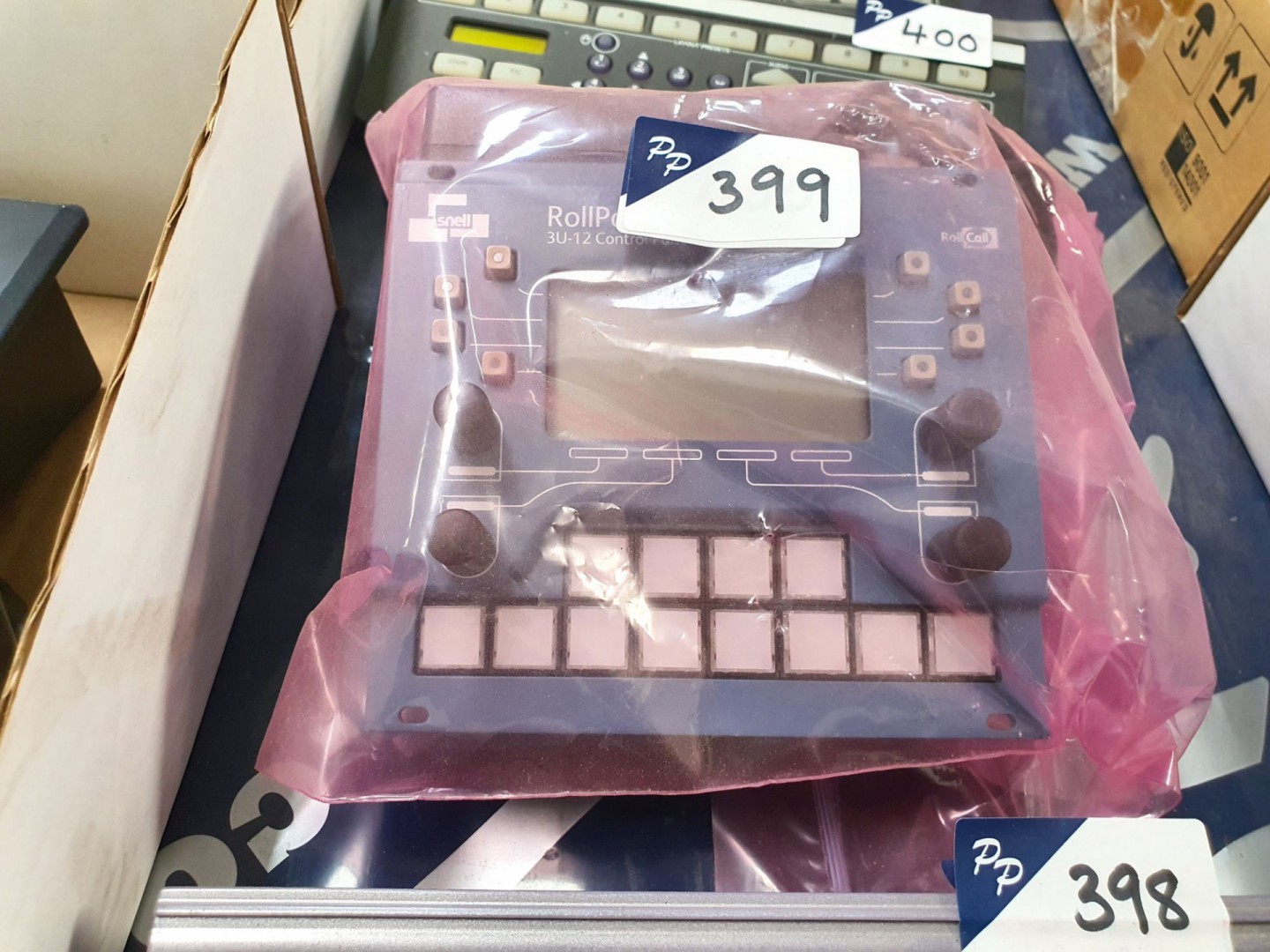 Snell router panel. Snell Roll Pod IU-40 control panel. Trendnet Greennet TEG-S16G gigabit switch, Daxten Scout Combo 16 channel router. Rubidium Seriest universal video data processor. Snell Roll Call matrix panels.