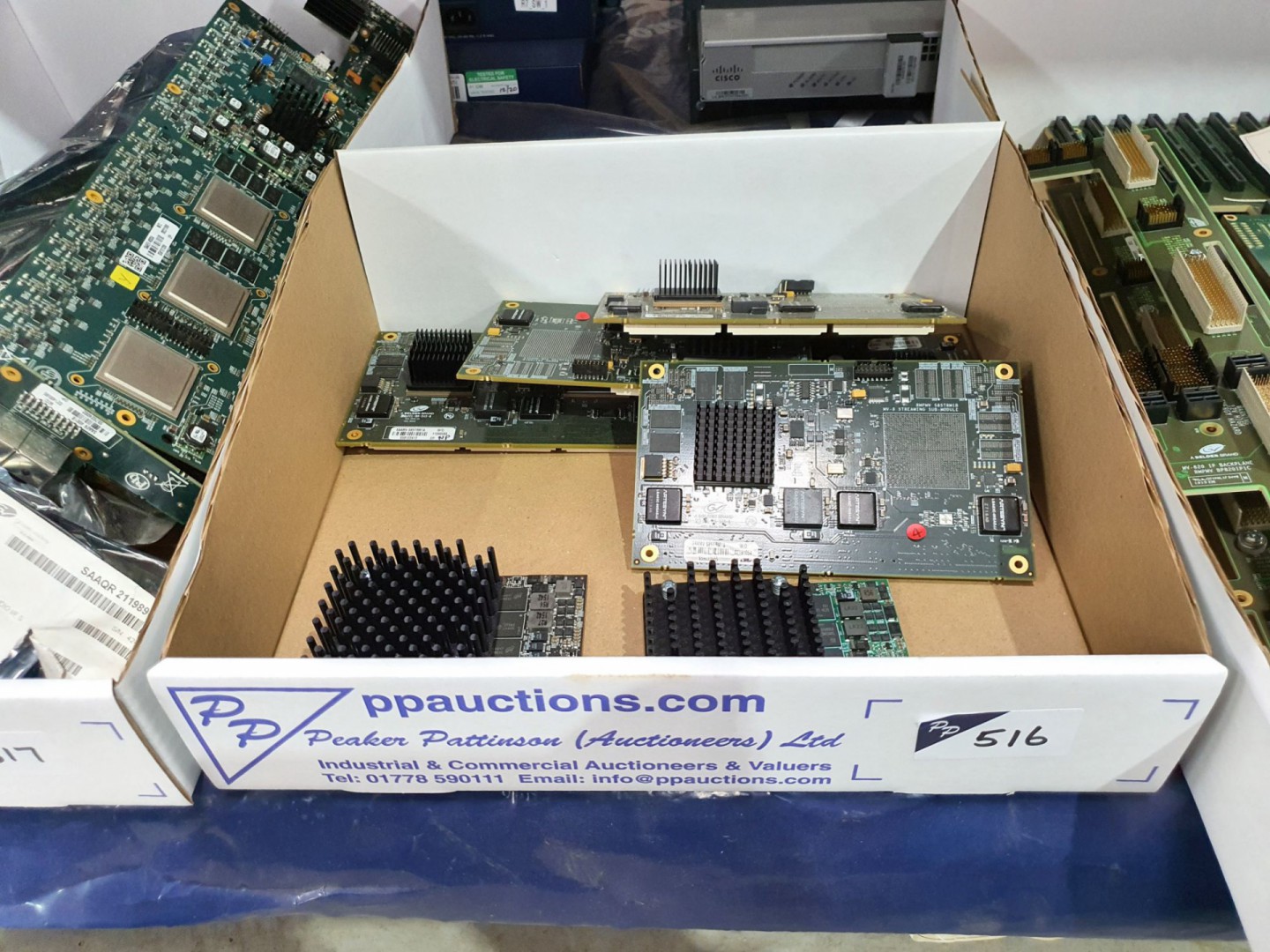 Wacom Intuos 3 graphics tablet. Qty HP Procurve, Cisco, Netgear etc network switches. 3x Comtrol Device Master RTS RM. 6x Grass Valley / 2x Quantel SQ SAS adaptors. 10x Neutrik NAC3FC-HC power on power cables. Chromatec card modules. 15x Snell RMPFP VegatJ2Y Vega 1/0 test jigs. Qty various fibre & Kontron modules. Qty BVM SCSi I/F cards. 4x Grass Valley S3 front interconnect modules. 4x DeltaCast capture cards.