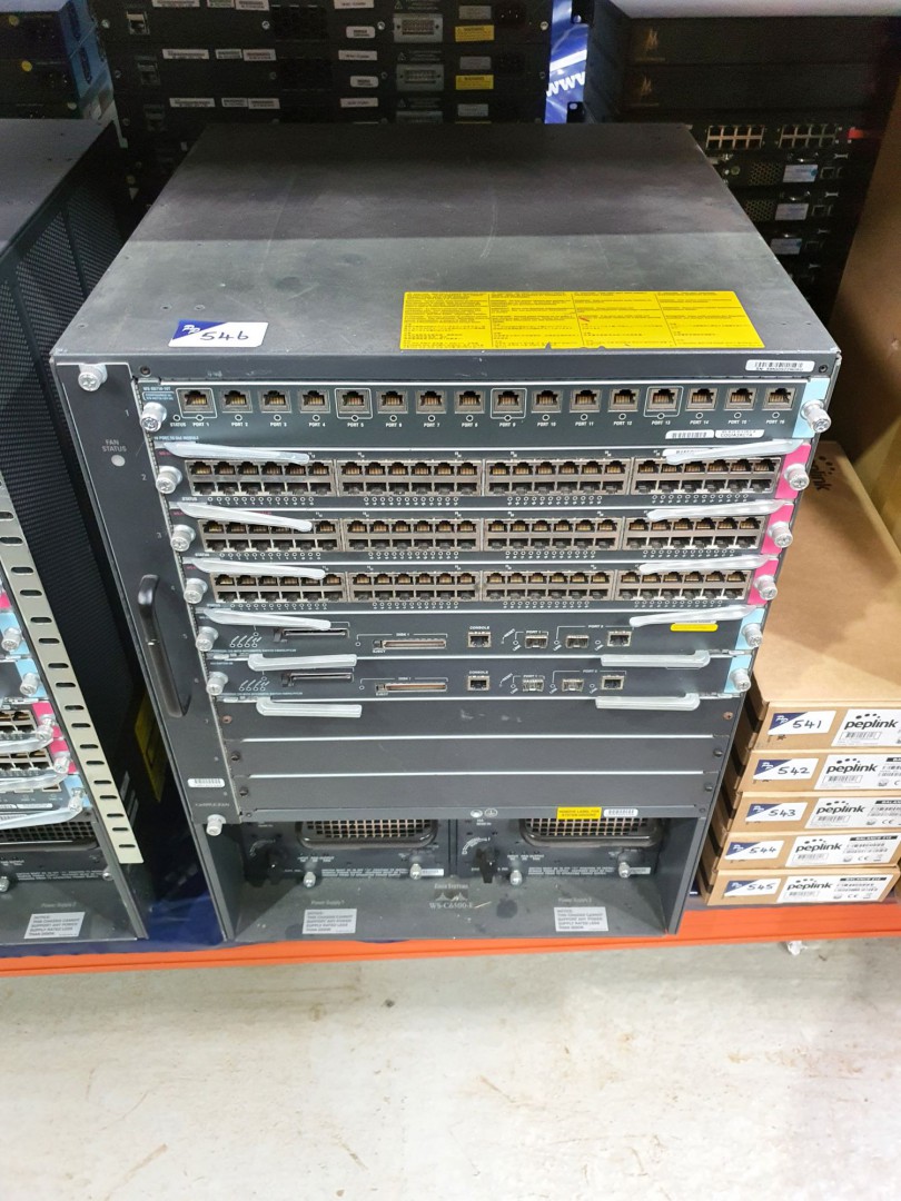 Cisco WS-C6500-E frame inc: Cisco WS-X6716-10T 16 port 10Gbe module, 3x Cisco WS-X6748-GE-TX, 2x Cisco WS-SUP720-3B network switches