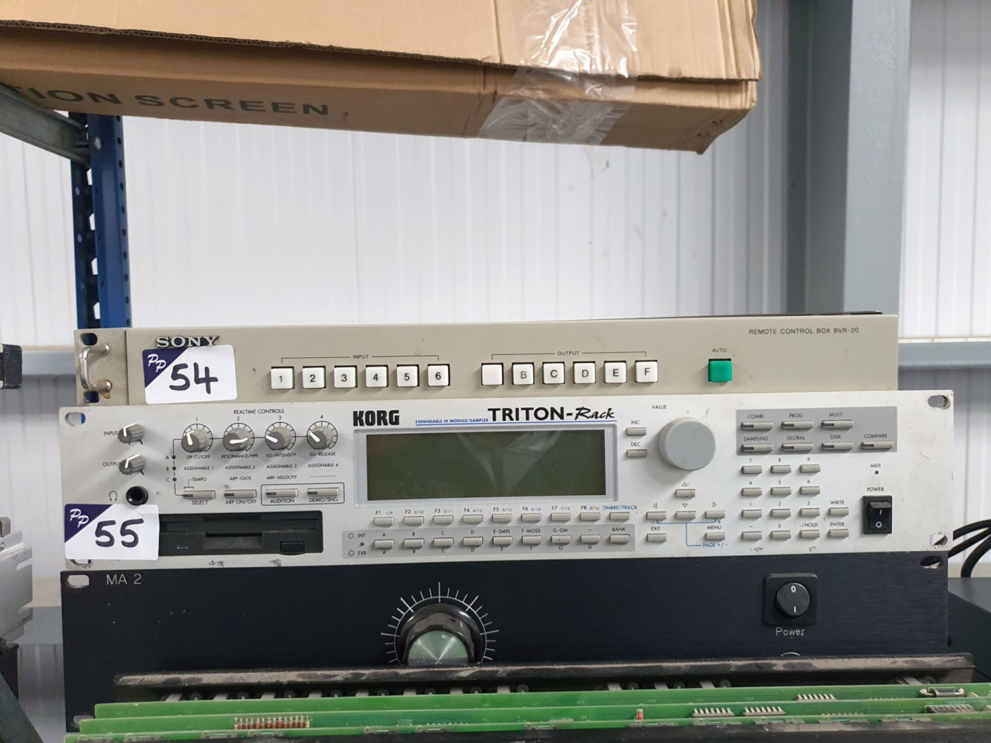 Fostex 80 reel to reel recorder – reproducer. Infortrend hard drive storage unit. Sony DMU-3024 digital meter unit. BTS BCB75, Sony DVR-28P, VO-5800PS, DVW-A500P, DVW-A510, DSR-1500, BVU-870P video cassette recorders / players. Sony DMR-2000 & Sony DMR-4000 digital master recorder. Marantz RC640CDR compact disc remote. 2x Audio Design DMM digital mini mixing consoles. Klark Teknik 3rd dimension BBD-320 analog multi-dimensional signal processor. Tektronix 118-AS audio synchroniser. Tektronix VS211A PAL video synchroniser. Tektronix 1741A waveform / vector monitor, TSL monitoring unit. Adams Smith Hudson 2600 System. 2x Tektronix 1721 vector scopes. Tektronix 143 Secam test signal generator. Qty Sony, Panasonic CRT monitors. 2x Sony PCM-1600 PCM audio unit. CPE Medisafe sonic irrigator. Sony BVR-20 remote control box. Korg Triton-Rack expandable HI module sampler. Blip MA2 control with remote. Sony PCM-7040, PCM-2500A, PCM 2500B, PCM-R500 digital audio recorder. Kramer VM-5AR11 video audio distribution amp. Tascam DX-4D professional noise reduction unit. 3x Sony MDS-B5 MD recorder. Electronic projector screen. Amonstar YJ-1500QZ stage fog machine. Sony SDP-1000 digital audio effector. JVC SA-T41E time base corrector. Sony DFX-2400 sampling rate converter. Nakamichi NR-200 noise reduction system. Sony DMR-2000 digital master recorder. 3x Sony PCM-9000 master disc recorder. 2x Revox G36 stereo reel to reel tape machine. Sanyo G-2615H-2 solid state stereo music centre. 2x Auso ELA75-77 PPM. Sony PS-T1 direct drive stereo turntable. Sanyo VTC-9300PN Betacord video cassette recorder. Qty transit cases. Nakamichi 1000 tri-tracer 3 head cassette system. Manitron monitor. 2x Sony DMX-R100 digital audio mixing console. Revox A700 reel to reel tape recorder. Qty various rack type shelves etc. AMX NI-3000 Netlink integrated controller. DBX 215S graphic equaliser. Soundfield SPS422 studio meter system. Junger B43 digital audio toolbox