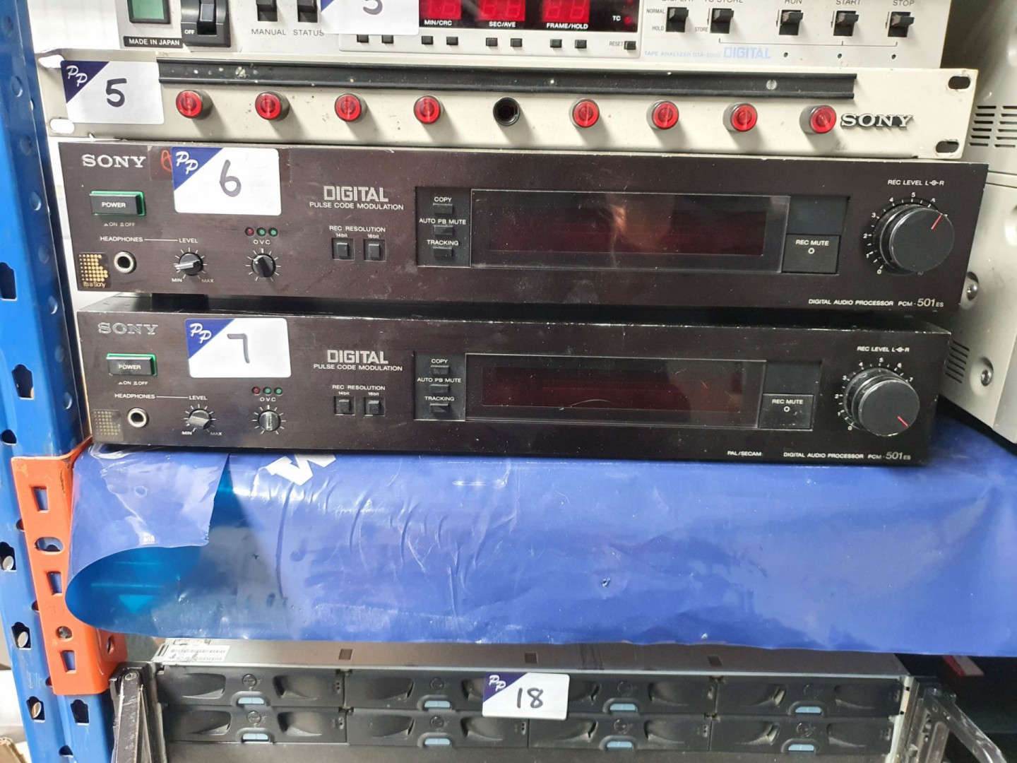 Rack type PPM. Otari UFC-24 universal format converter. Soundcraftsman TG2245 twin graphic balance in / out. Audio Design DBL-9 digital broadcast limiter. Black Magic Design smart view duo. Kramer VS-611 6x1 vertical interval switcher. SM Pro Audio D18 line mixer. Yamaha Q2031 graphic equaliser. Peavey Deca / 1200 digital energy conversion amp. Marantz RC640CDR remote control. Elite Camix 401 loudspeakers. Sony SL-C6UB Betamax video cassette recorder. Marantz DD-82 cassette deck. Sony PCM-701ES digital audio processor. 2x Marantz PMD321 CD player. Marantz CDR640 CD recorder. CD Associates SL25 CD-R analyser. Microphone sound deflector. Thump 12A powered loudspeakers. Mackie Active SWA1501 subwoofers. Ferrograph 4A, Teac A-3440 & Otari MX-5050, Otari MX7800, Otari MTR-10 reel to reel recorder. Sony LVA-8000P laser video disc player. 3x Sony Editing system. Chase etc microphone stands. Orla Shure Prestige electric organ on stand. Sony PCM-3324A digital audio recorder. Sony RM-3348 digital audio recorder remote. 2x DTS-6D playback system 12x Doremi Cinema AUD-D2A D/A audio converter. 9x Dolby CP500 digital cinema processor, Dolby DA20 digital film sound processor. Dolby SA10 surround adapter. 2x Master Image stereoscopic 3D theatre system. 2x loudspeaker subwoofers. Qty US, HP, Dell etc LCD monitors.