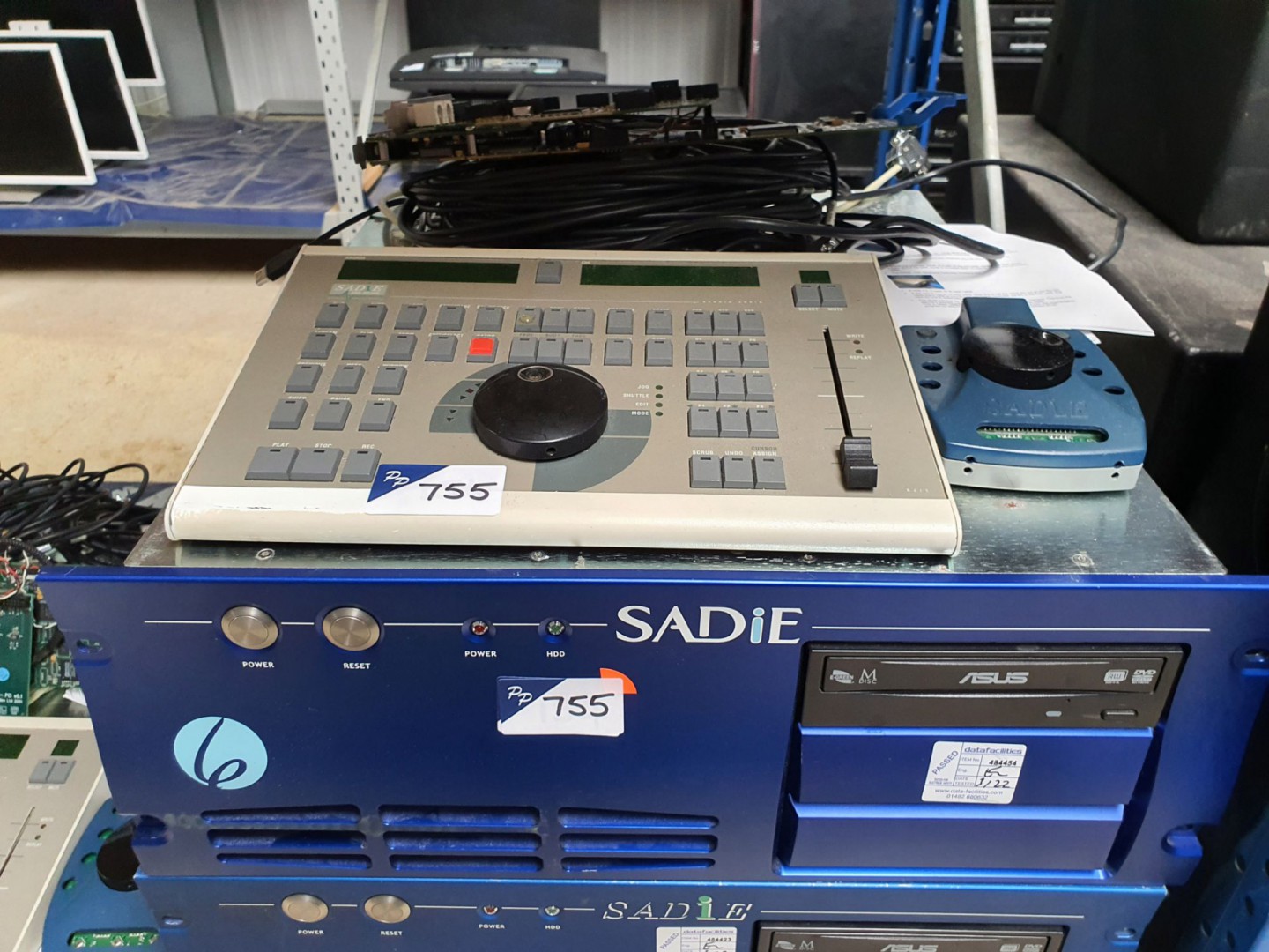 Rack type PPM. Otari UFC-24 universal format converter. Soundcraftsman TG2245 twin graphic balance in / out. Audio Design DBL-9 digital broadcast limiter. Black Magic Design smart view duo. Kramer VS-611 6x1 vertical interval switcher. SM Pro Audio D18 line mixer. Yamaha Q2031 graphic equaliser. Peavey Deca / 1200 digital energy conversion amp. Marantz RC640CDR remote control. Elite Camix 401 loudspeakers. Sony SL-C6UB Betamax video cassette recorder. Marantz DD-82 cassette deck. Sony PCM-701ES digital audio processor. 2x Marantz PMD321 CD player. Marantz CDR640 CD recorder. CD Associates SL25 CD-R analyser. Microphone sound deflector. Thump 12A powered loudspeakers. Mackie Active SWA1501 subwoofers. Ferrograph 4A, Teac A-3440 & Otari MX-5050, Otari MX7800, Otari MTR-10 reel to reel recorder. Sony LVA-8000P laser video disc player. 3x Sony Editing system. Chase etc microphone stands. Orla Shure Prestige electric organ on stand. Sony PCM-3324A digital audio recorder. Sony RM-3348 digital audio recorder remote. 2x DTS-6D playback system 12x Doremi Cinema AUD-D2A D/A audio converter. 9x Dolby CP500 digital cinema processor, Dolby DA20 digital film sound processor. Dolby SA10 surround adapter. 2x Master Image stereoscopic 3D theatre system. 2x loudspeaker subwoofers. Qty US, HP, Dell etc LCD monitors.