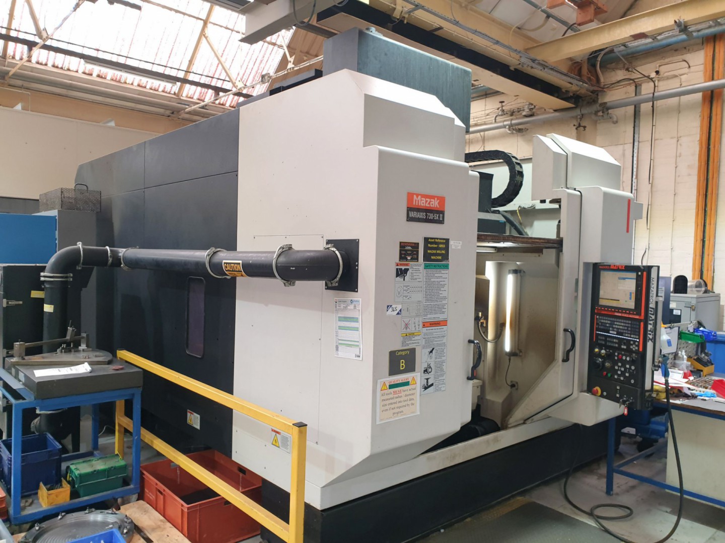 Mazak Variaxis 730-5X II CNC 5 axis machining centre, 10,000rpm max spindle speed 40 tool ATC, 630x500mm table, 30kW spindle power, high pressure coolant, coolant through spindle, Mazatrol Matrix control, Cromar swarf conveyor & coolant etc, s/n 211173 (2008)