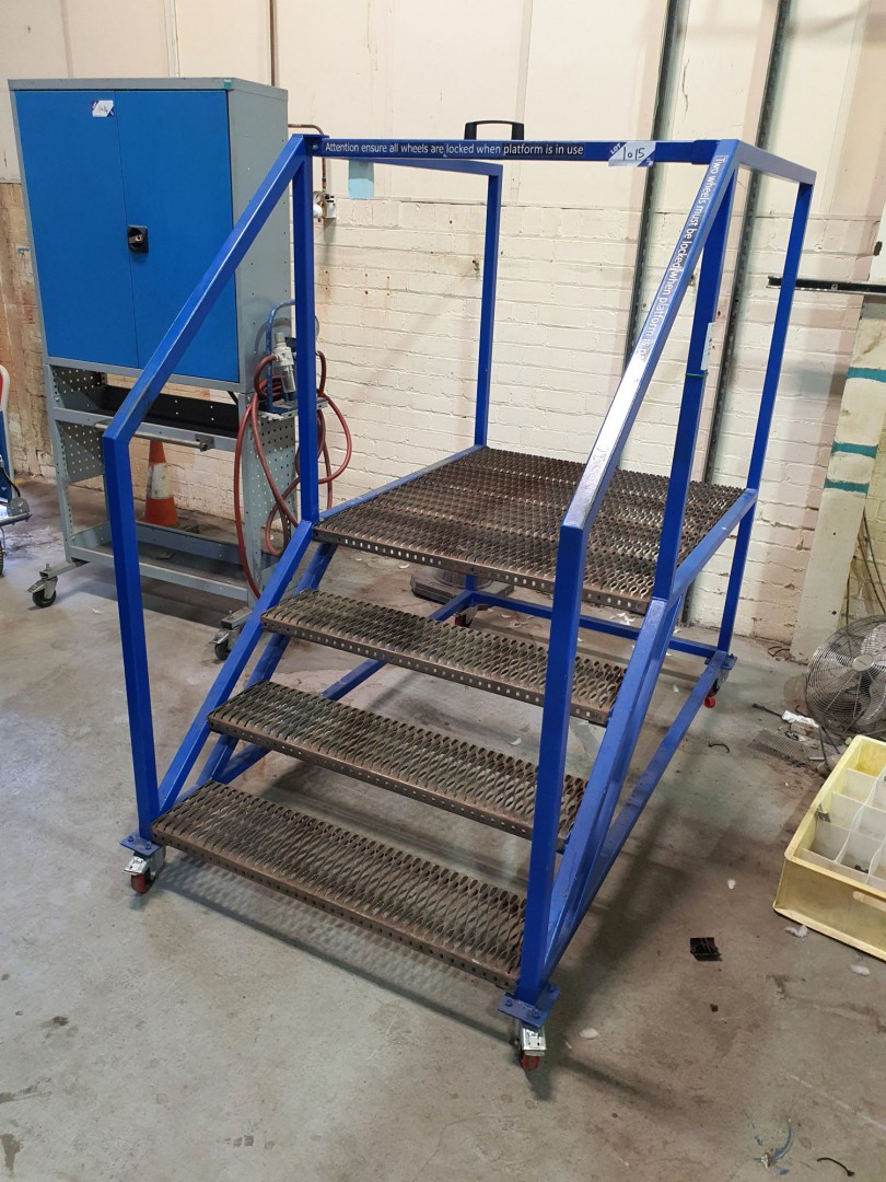 Various manual pallet trucks, safety steps etc. Qty various wire mesh stores, plastic boxes, stores, racking etc.