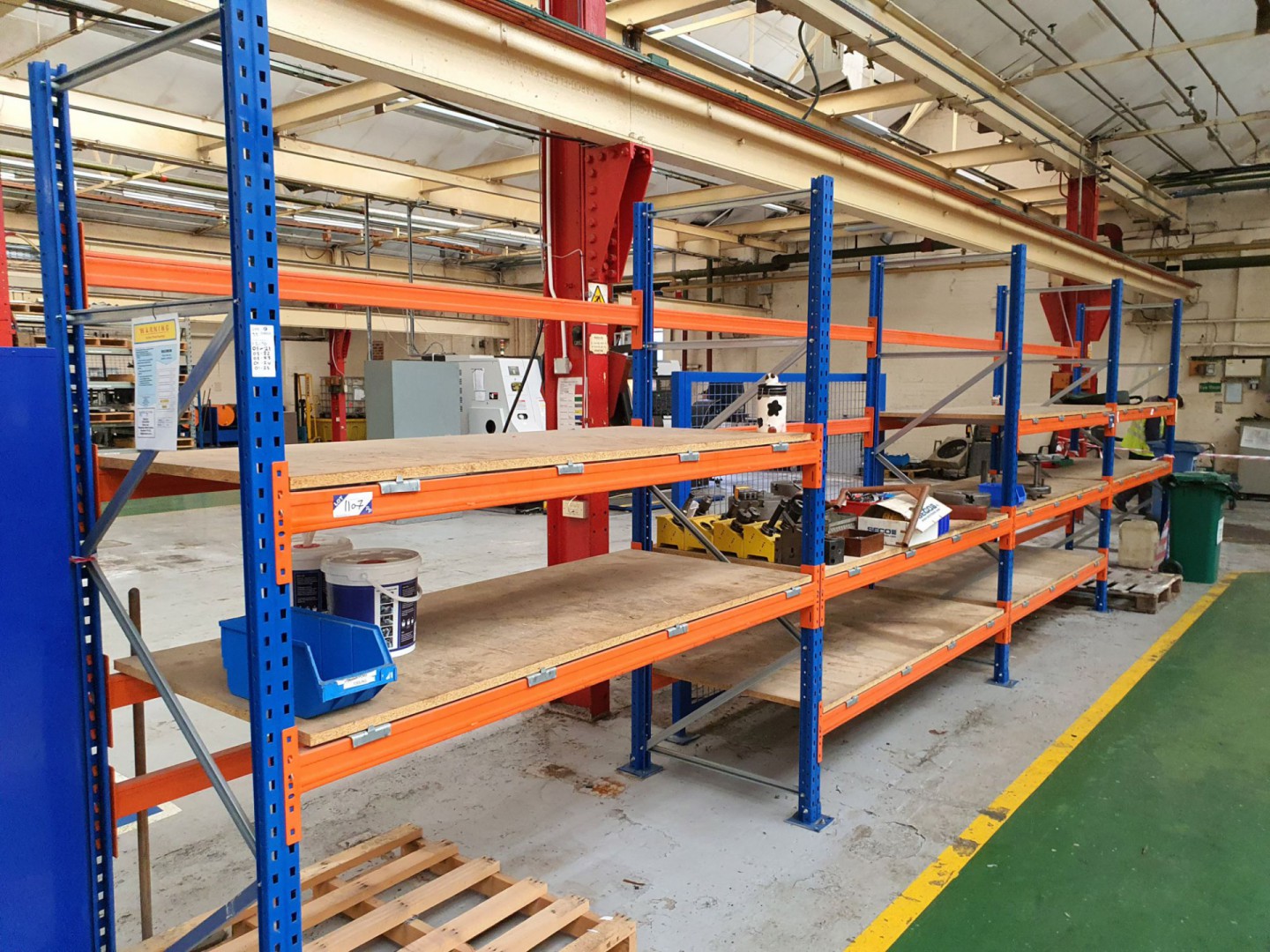 Qty various HD boltless pallet racking. Rhino TQS factory heater