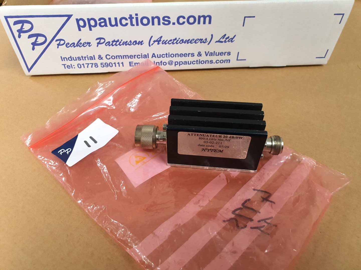 Hytem 03-02-211 attenuator, 20dBm, 8W 800-4GHz Nm /NF - Lot Located at: PP Saleroom, Aunby, Lincolnshire