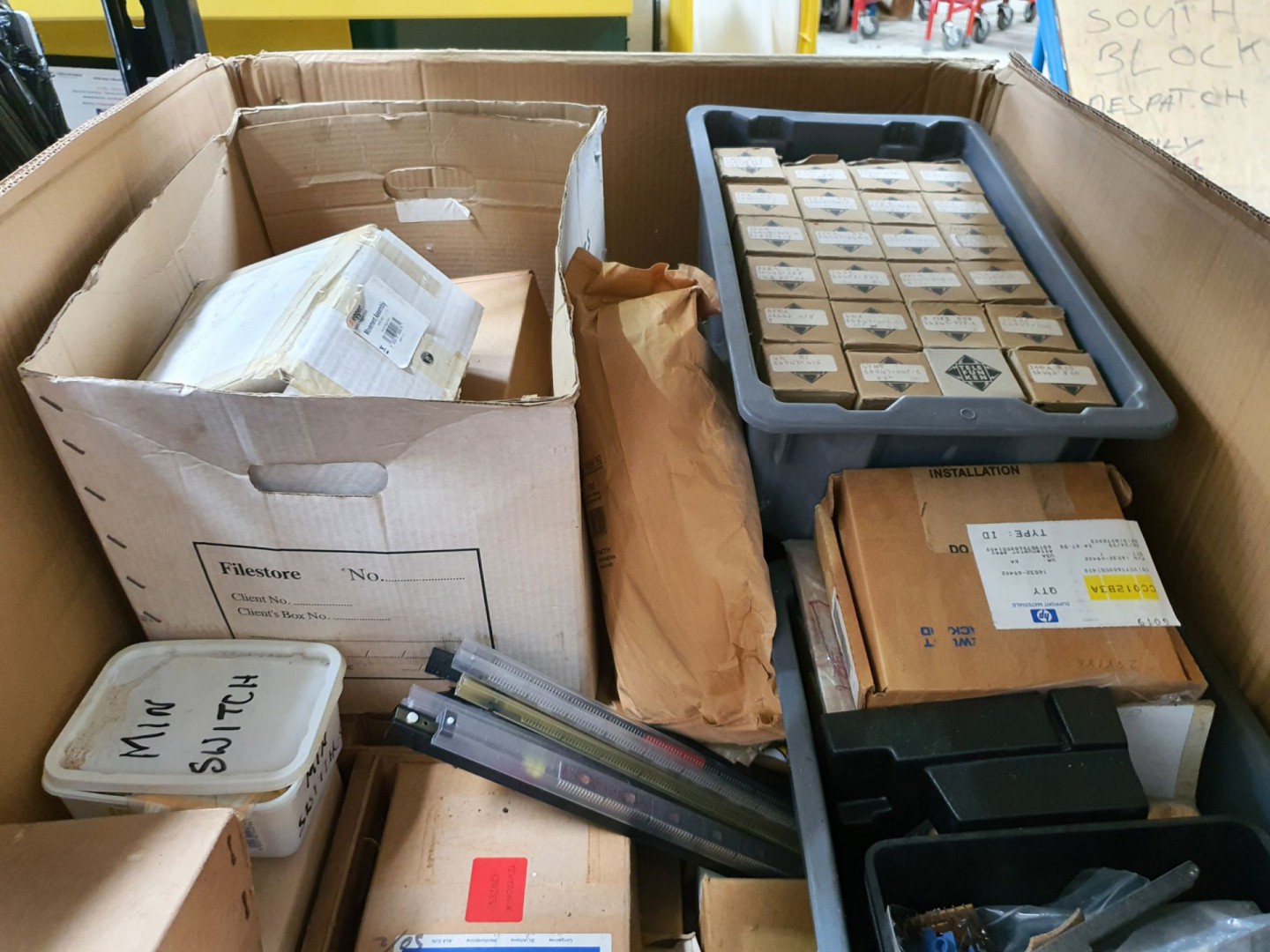 Qty various HP / Agilent, Marconi, Tektronix, AVO spare parts etc in box - Lot Located at: PP Saleroom, Aunby, Lincolnshire