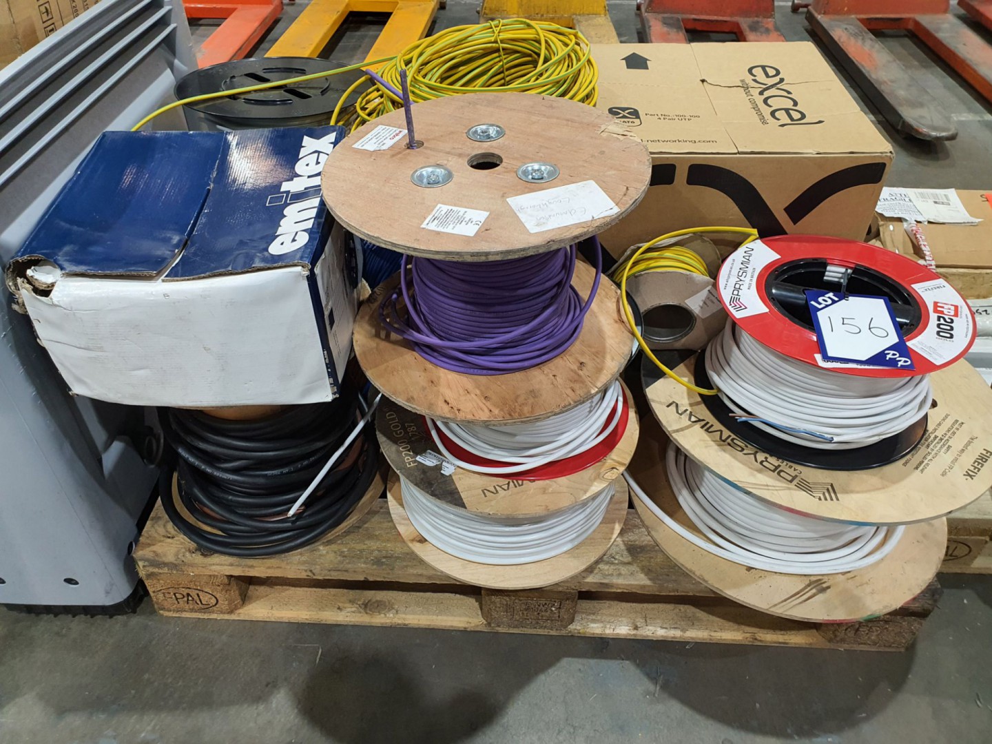 Qty various cable inc: 3 core 240v, Cat 6 network cable, multi core data cable, Earth cable, sleeving etc on pallet