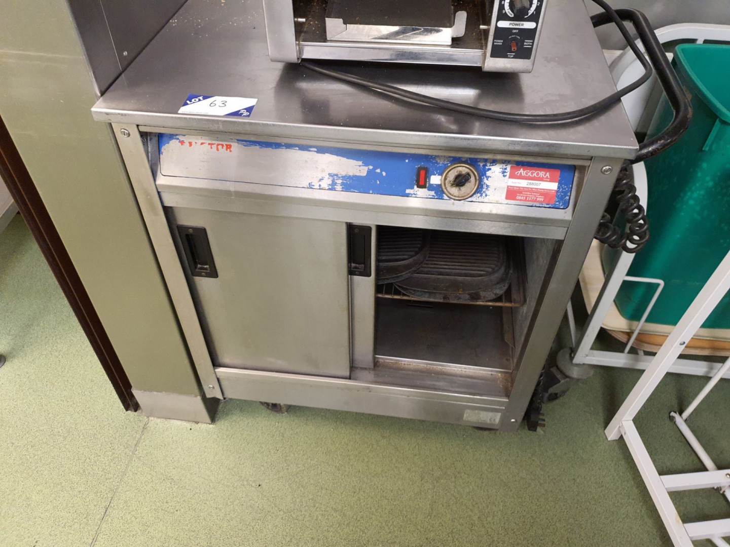 Canteen inc: vending machines, microwave, tables & chairs, Hydro 957 glass washer, sinks, prep tables, fridges, freezers, shelves, Rational BCCWE101 combi oven (2011), Bartlett yeoman gas oven, Cobra gas grill, Lincat deep fat fryer, Hobart mixer, cash register, toasters, display cabinets, trolleys etc etc.