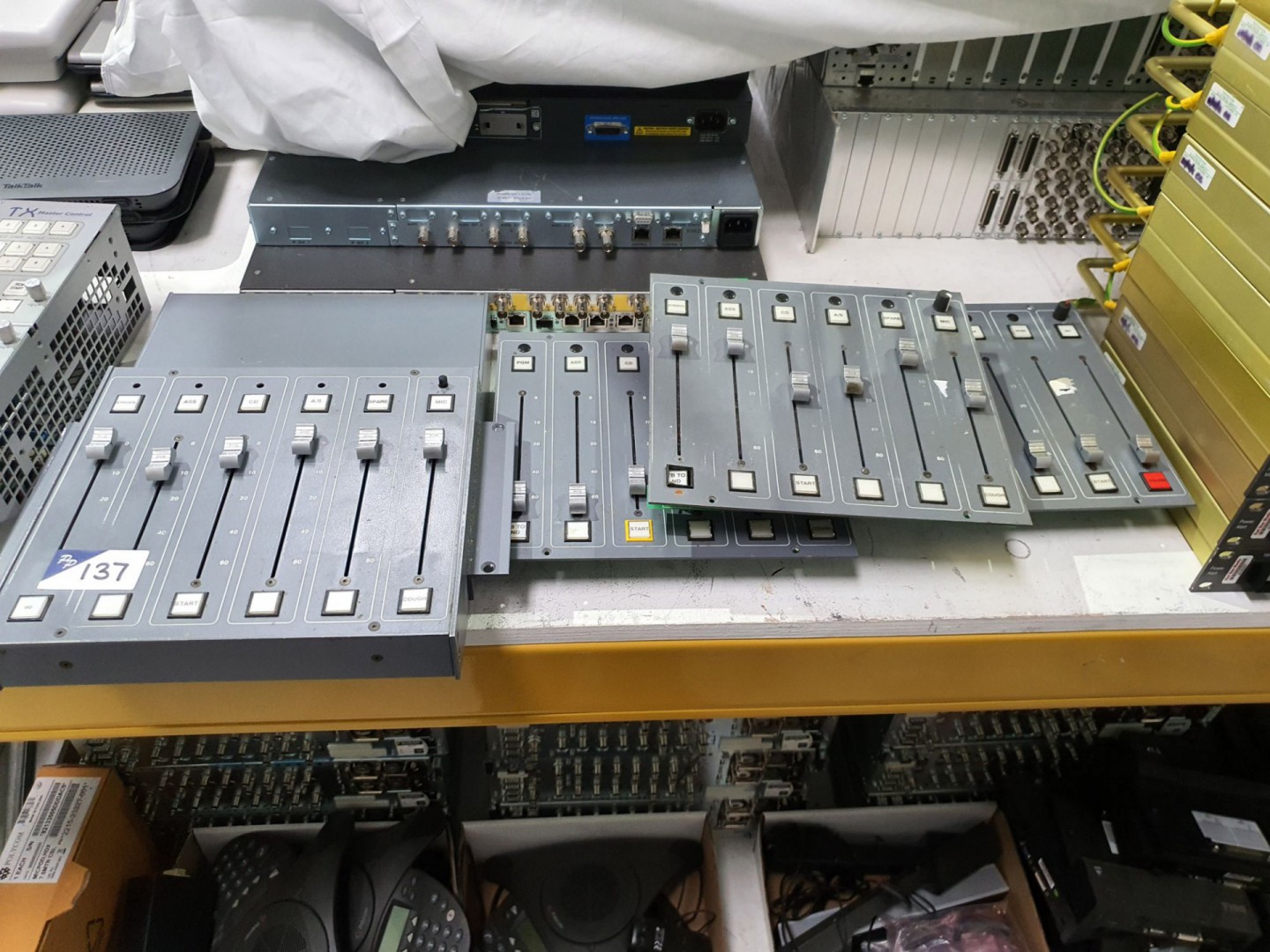 3x Balbox GPRL026 GPi inserter / extractor. 10x various Pro-Bel modules. Qty Adderlink Link remotes, USB extender & CAT6 extender remotes. 6x Penny & Giles faders. 4x Gefen DVI 1000HDS DVI extenders. Qty various PCI cards. 20x various LCD monitors, TV’s etc. Raritan UMT1664 Paragon, Raritan UMT442 & Raritan Dominion SX KVM switches. Eyeheight flexi panel. Qty Foundry Networks, Motorola, Netgear, HP, Cisco etc network switches. 2x Nevion Flashlink filters, 100CMZ, 1A. Qty various Roline video splitter, VGA extender, Targus serial reset etc. 5x MIC D33682 LAN cards