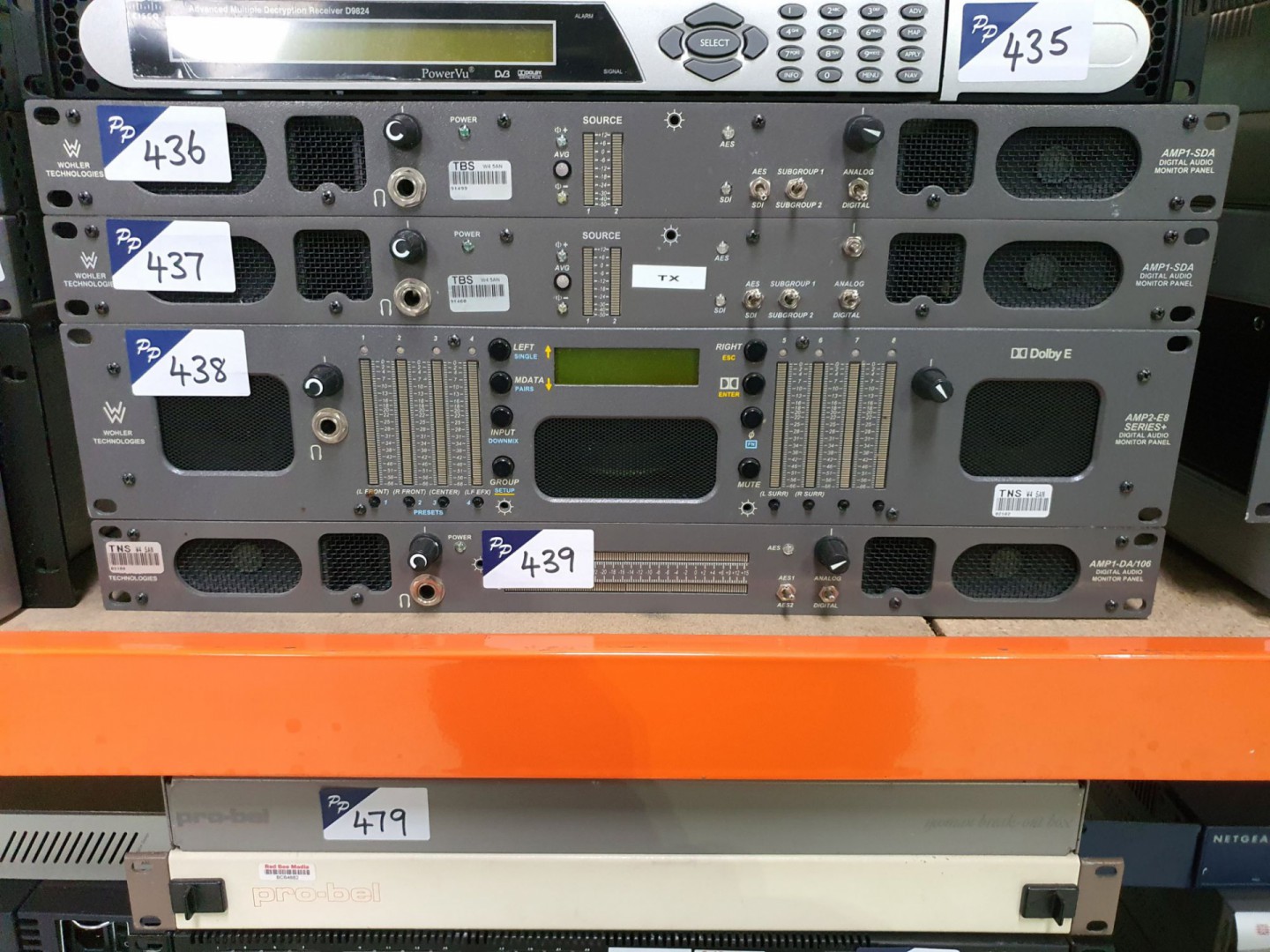 Behringer A500 reference amplifier. TSL AMU9-CHD+ audio monitor. 2x Dolby DP570 multichannel audio tool. Pro-Bel 6712 & Pro-Bel 6276/6277 controller. Sony MB-8N tuner base unit. Wohler AMP1-DA/106 digital audio monitor panel