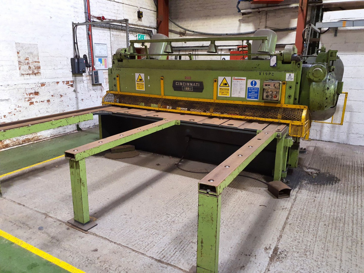 Cincinnati 2510 mechanical guillotine, power back gauge adjustment, 3/8” x 10ft capacity, front support