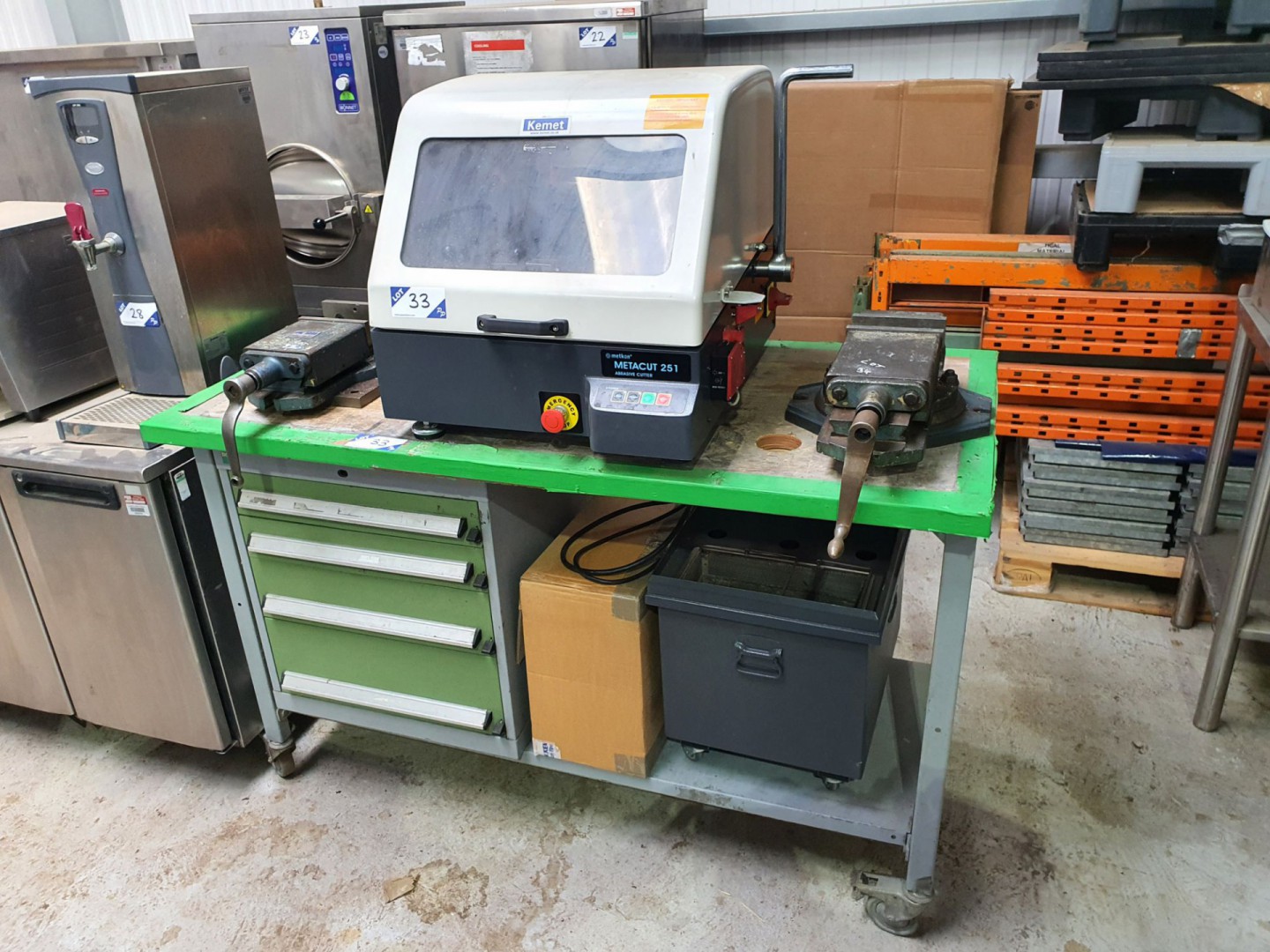 Kemet (Metkon) Metacut 251 abrasive cutter, 2800rpm, 250 & 300mm dia blade, inc: mobile workbench - Lot Located at: PP Saleroom, Aunby, Lincolnshire