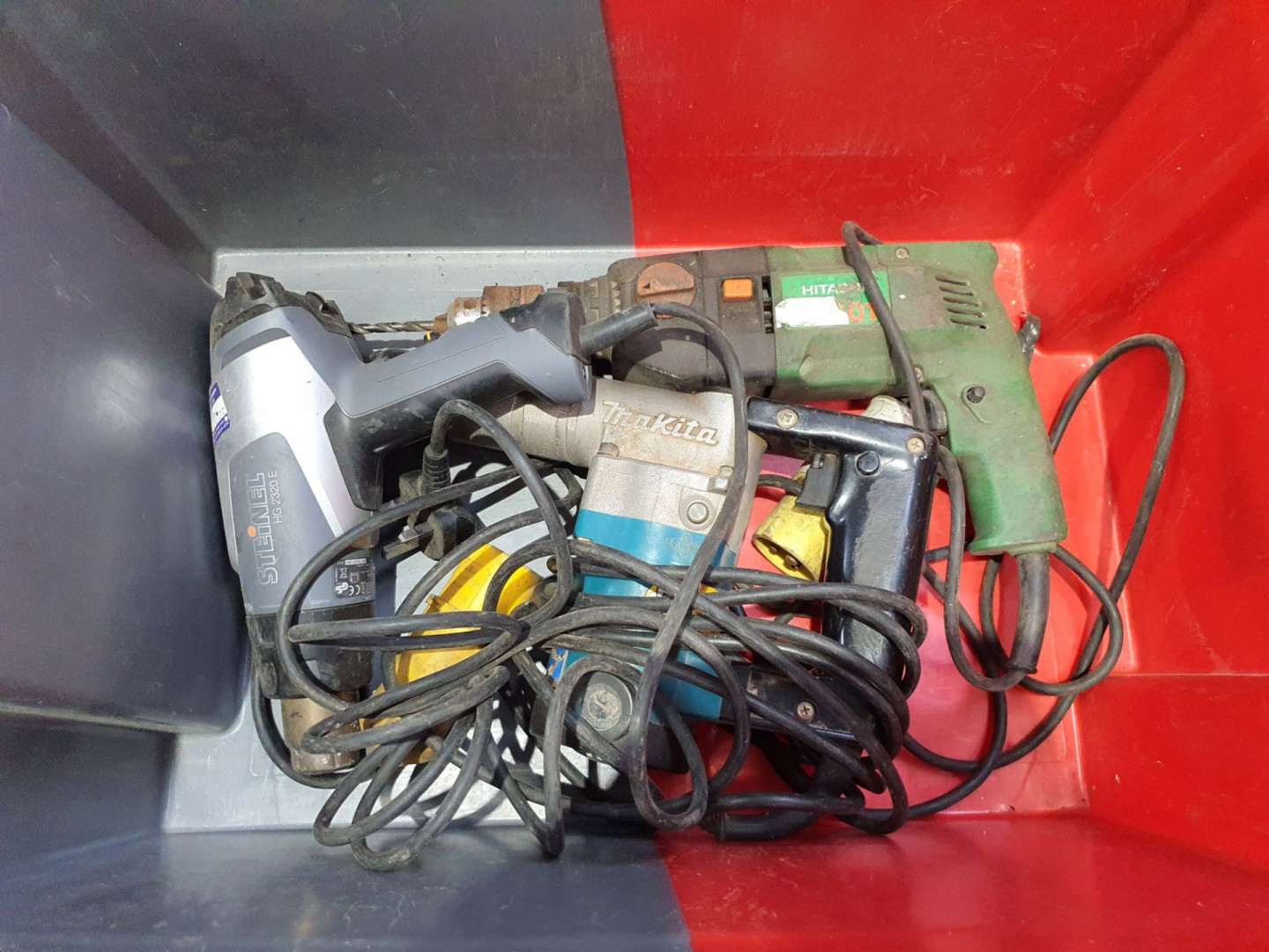 Steinel HG2320 heat gun, 240v, Makita HR1820 110v drill, Hitachi 110v hammer drill.