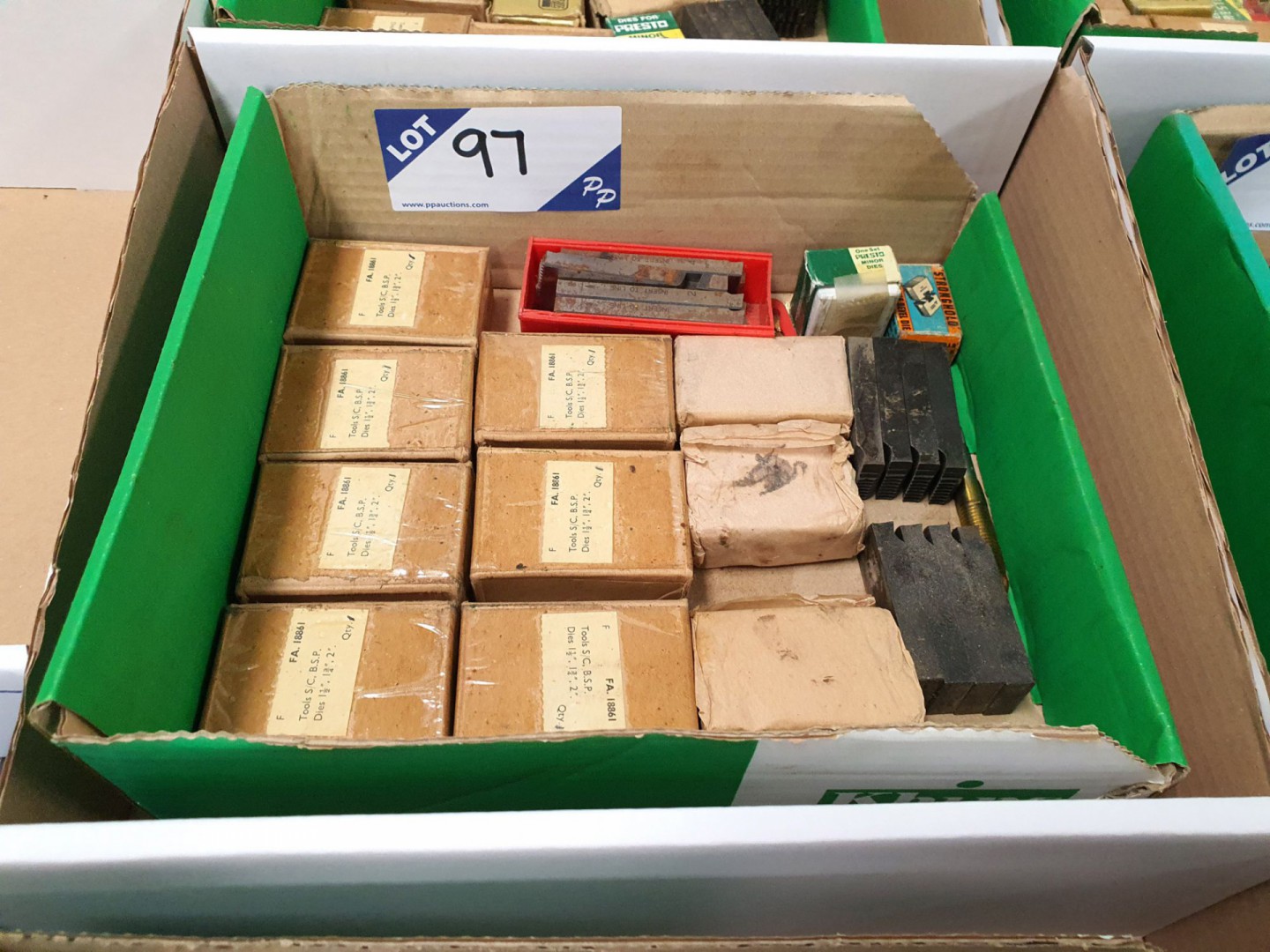 Qty small tooling including: HSS metric fine taps, nut taps, long series / spiral point taps, screw shank end mills, jobber drills, slot drills, reamers, DP gear cutters, Coventry die chasers, taper shank arbors, centre drills, BSC die nuts, Titanic Osborne 50 int chuck, Presto die heads, UNF/UNC die sets, Clarkson milling cutters, die stocks, keyless chucks etc.