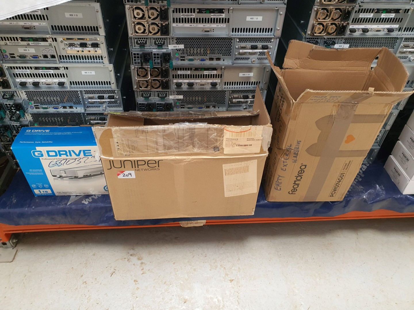 Various patch cords, cable, remote controls, servers, patch panels, frames, TV boxes, end user stations etc etc.