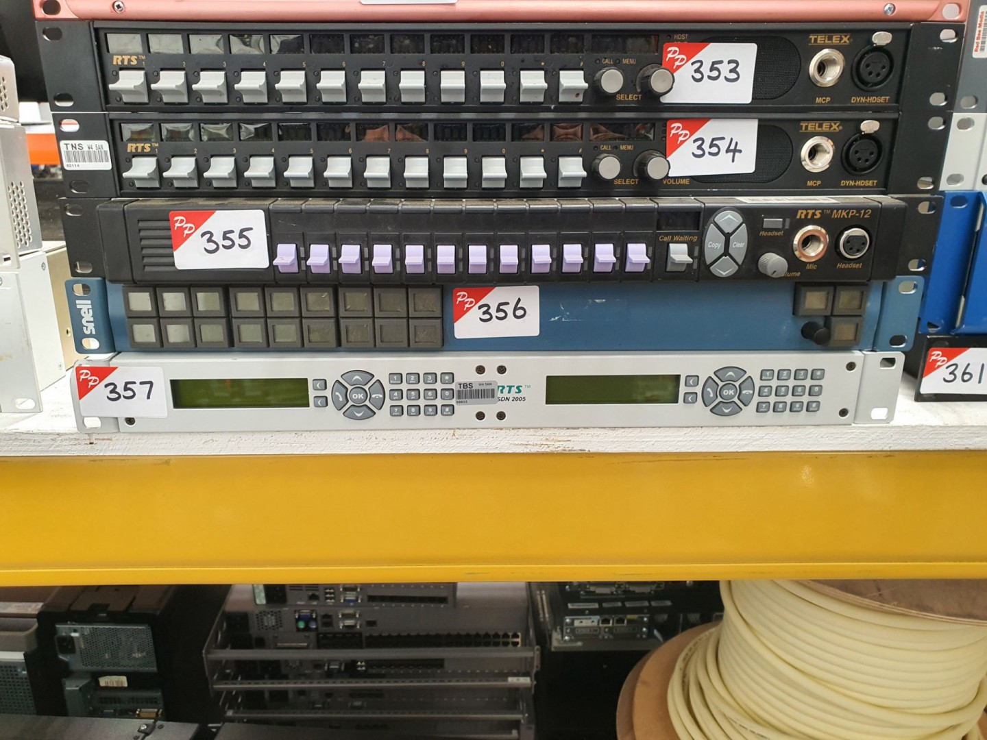 Various patch cords, cable, remote controls, servers, patch panels, frames, TV boxes, end user stations etc etc.