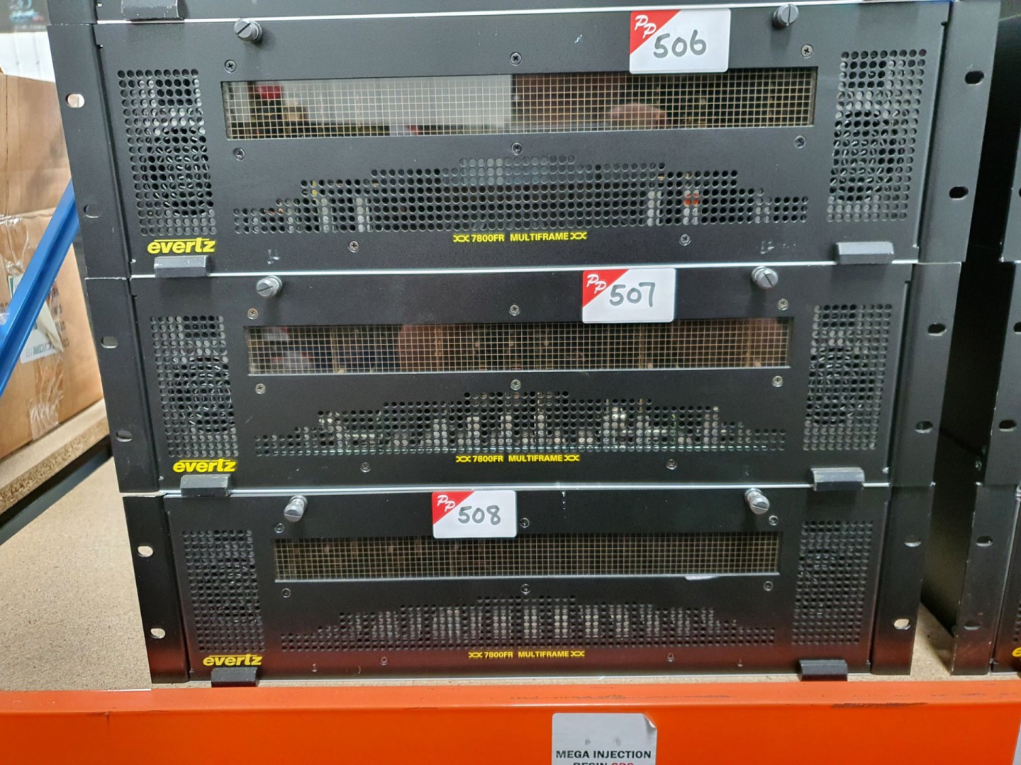 Qty Evertz 7800FR etc multiframes inc: front / rear cards