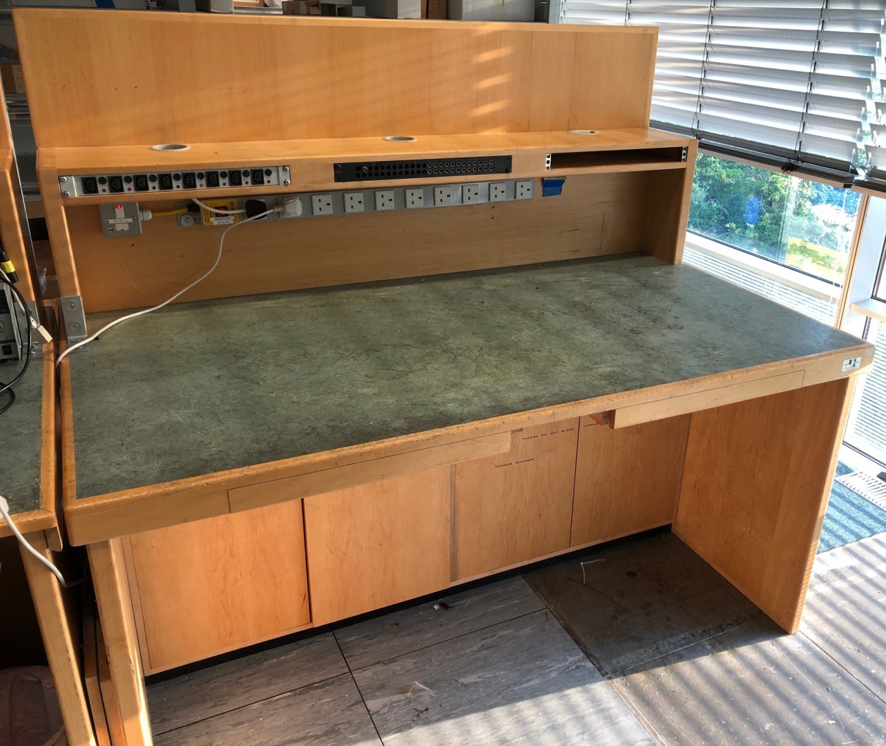 1790x1000mm wooden engineers workbench, 1580mm approx high with power strip - Lot Located at: Red Bee Media, Chiswick