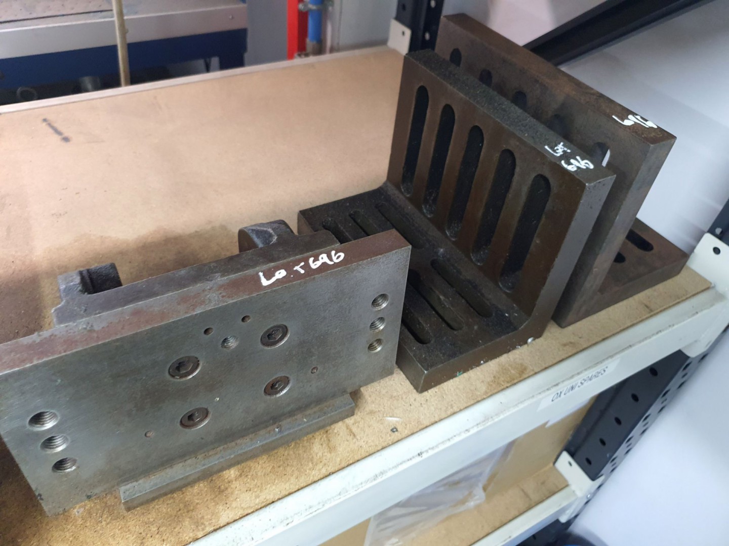 Tilt & Turn slotted angle plate, 220x160mm, 2x CI angle plates, 210x130mm, 230x150mm