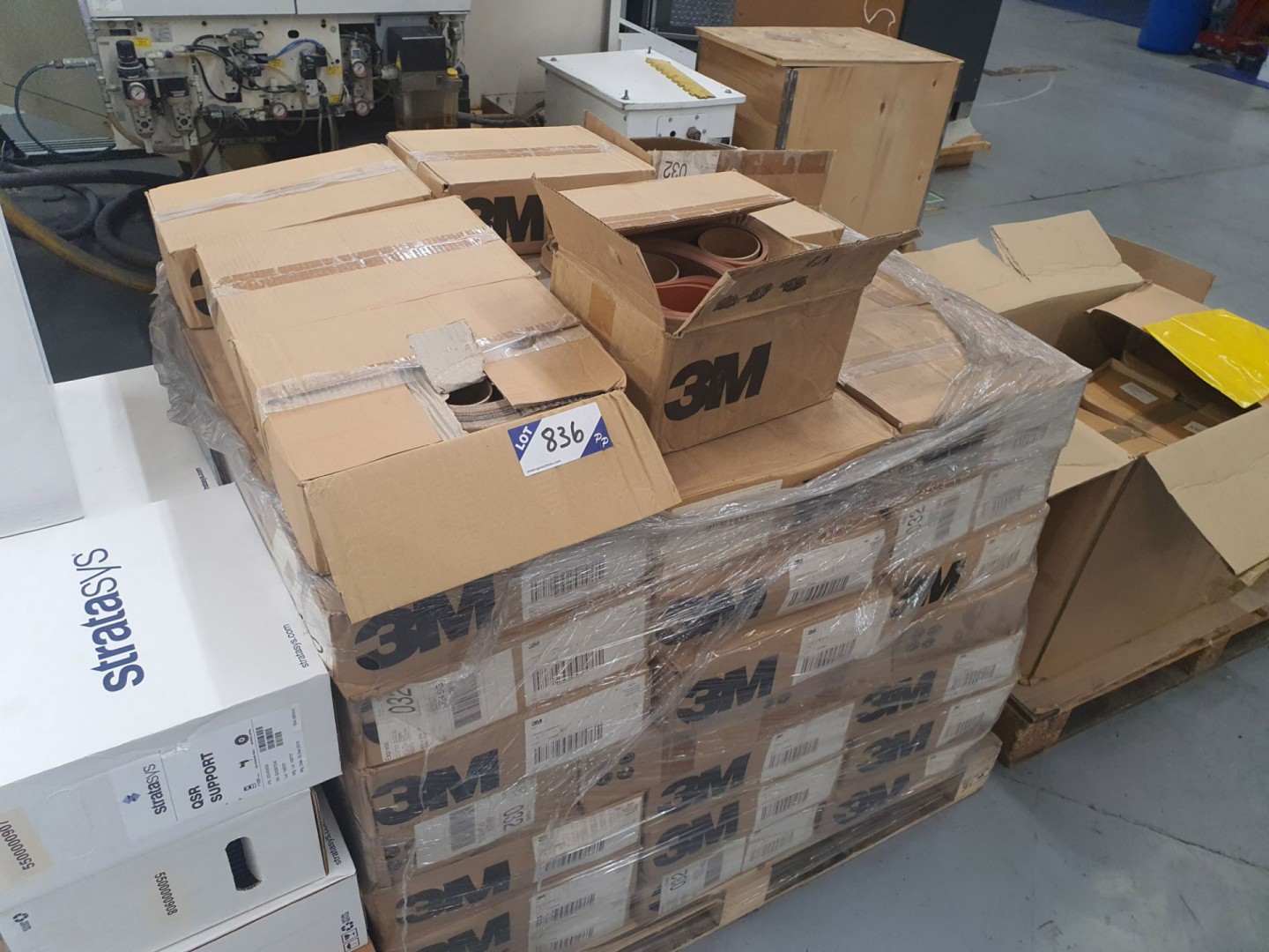 Qty 3M linishing belts, 25x2500mm on pallet (boxed & unused)