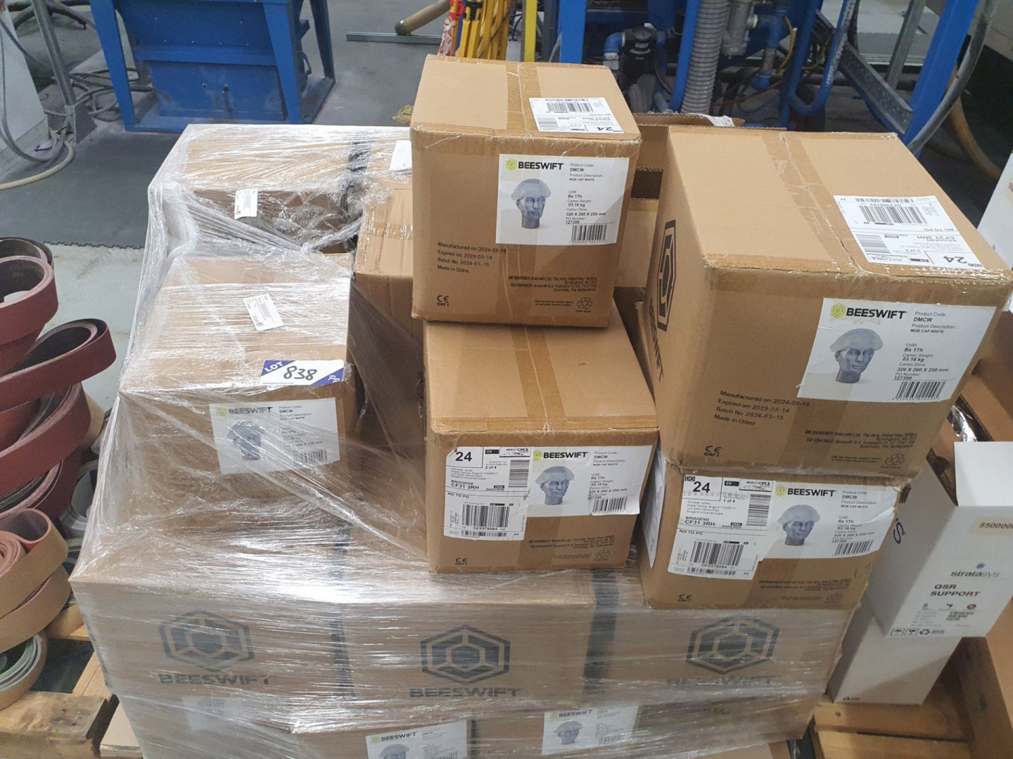 Qty Beeswift DMCW mop cap white hairnets on pallet (boxed & unused)