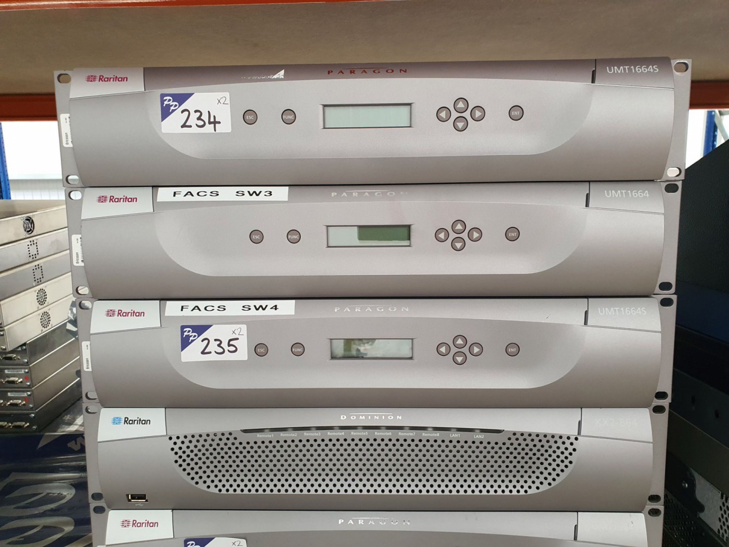 8x various Raritan KVM switches inc: user stations UMT 1664, USTIPI etc